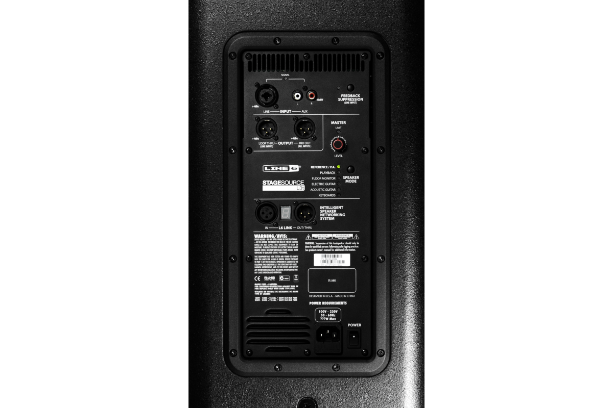 Управление на задней панели: 2 х XLR/1/4 TRS, 2 х RCA, L6 Link XLR In/Out, Loop Thru XLR, Mix Out XLR, Feedback Supression (On/Off/Mode), Master Level, Smart Speaker