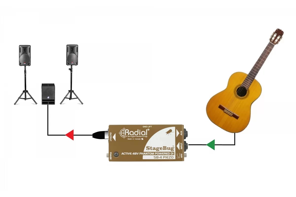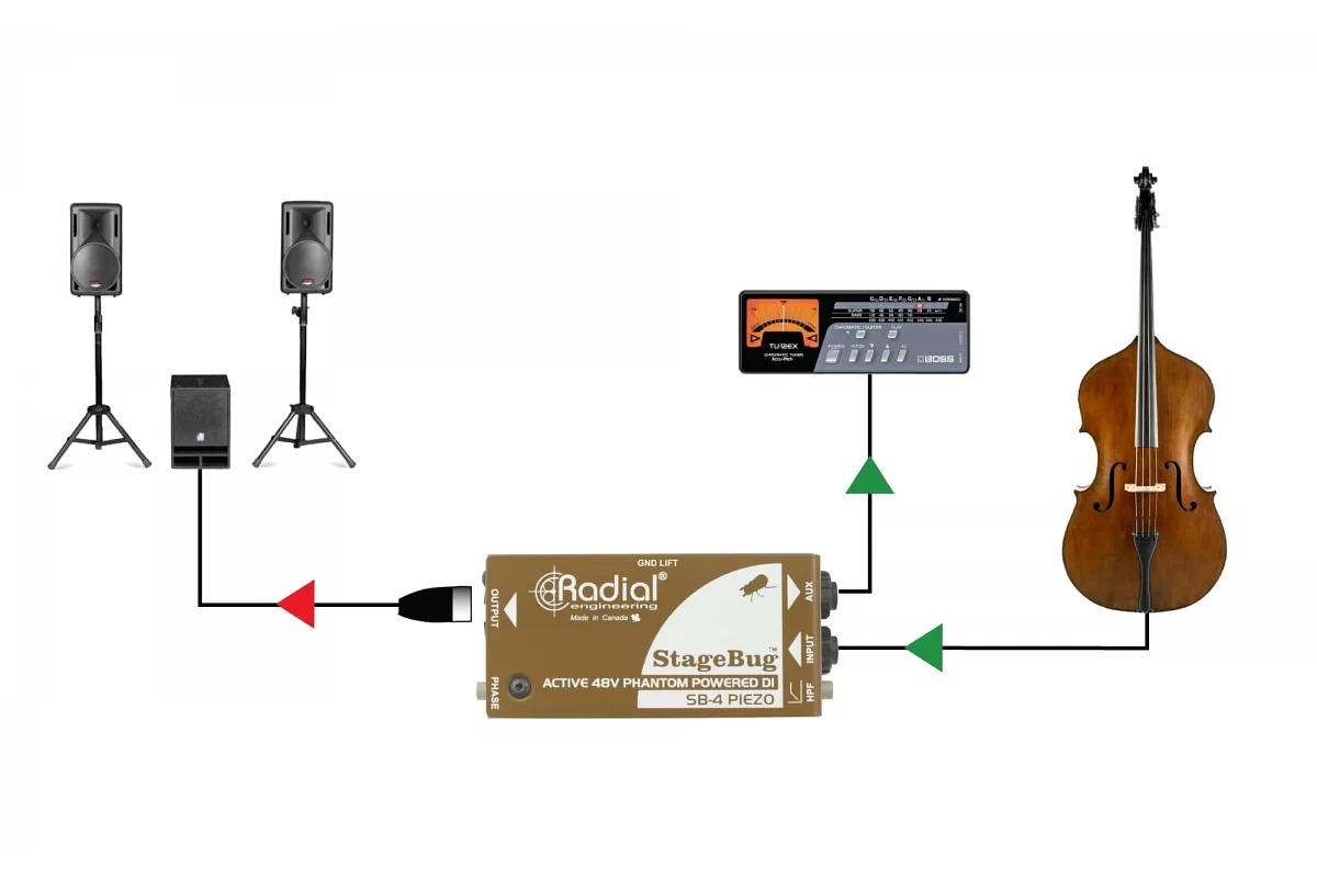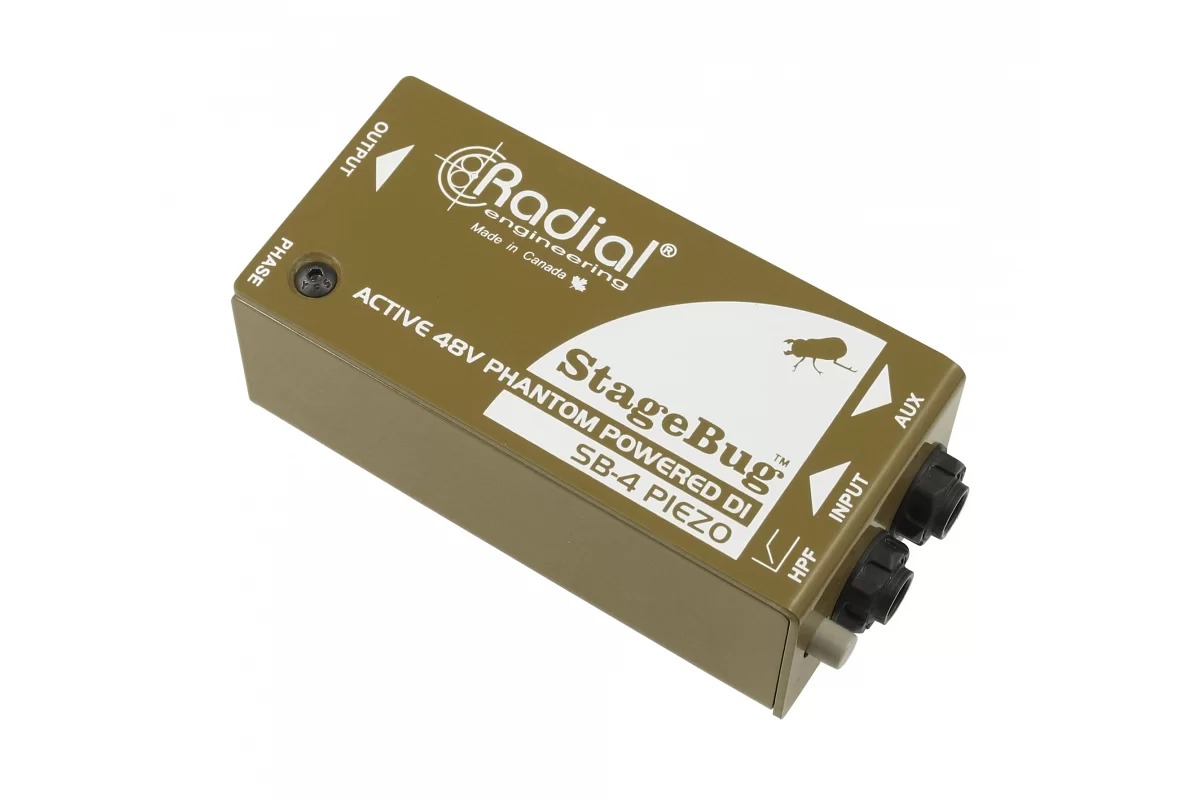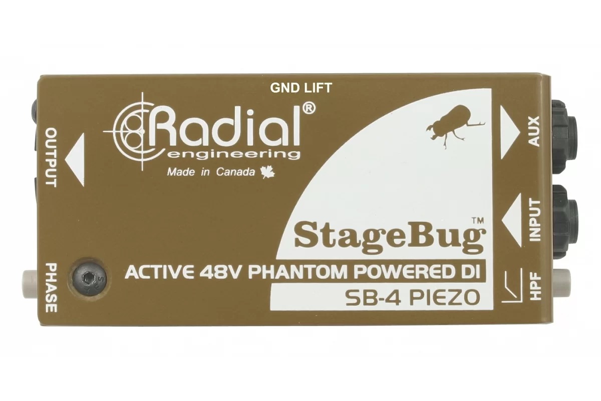 Radial StageBug SB-4 представляет собой компактный активный директ-бокс, оптимизированный для использования с пьезопреобразователями и достаточно компактный, чтобы поместиться в корпусе прибора.