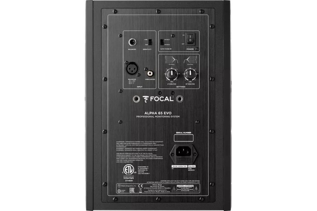 Focal Alpha 65 имеет 16,5-сантиметровый басовый/СЧ динамик с конической поверхностью из армированного стекловолокном полиэфирного пластика, помещенного в слоистый порт, связанный с усилителем на 70 Вт. Также новая модель оборудована 25-миллиметровым алюминиевым твиттером с купольной мембраной (усилитель на 35 Вт). АЧХ Alpha 65 колеблется в пределах от 40 Гц – 22 кГц (+/-3 дБ).