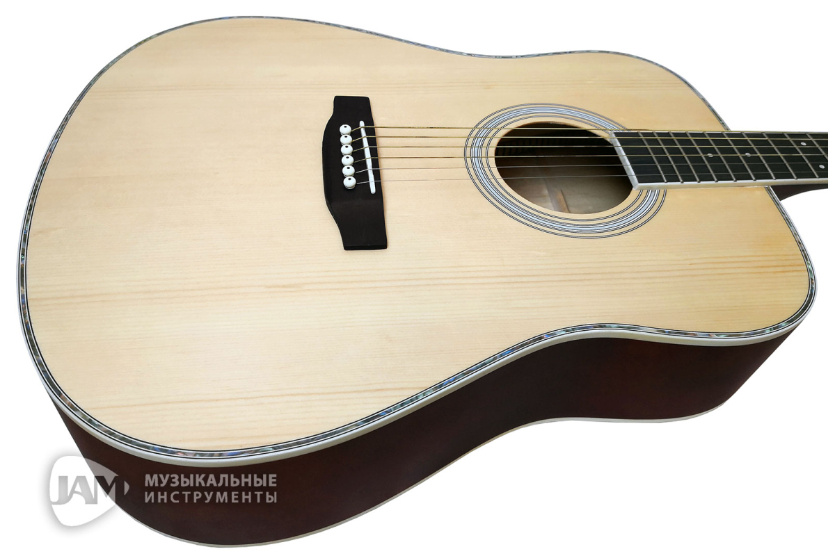 Эта доступная полноразмерная акустическая гитара станет отличным выбором для музыканта.