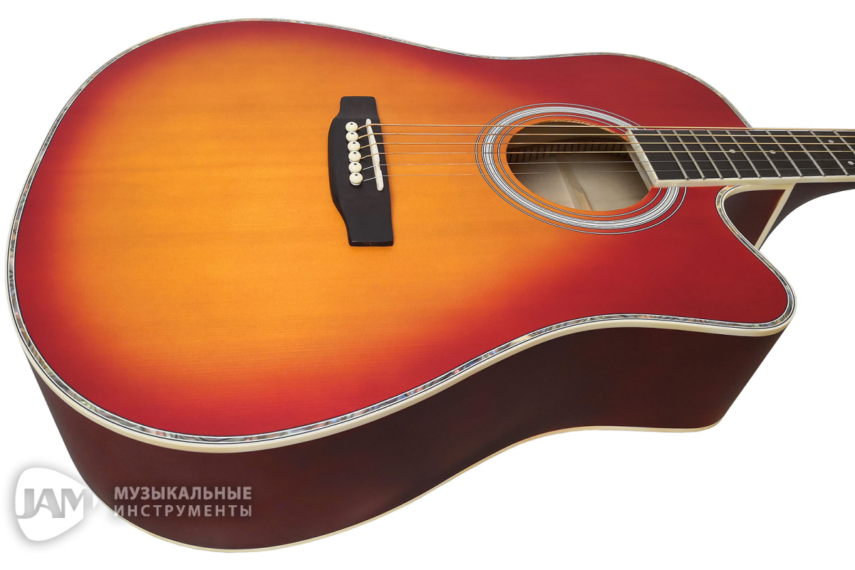 Этот музыкальный инструмент выделяется достаточно хорошим качеством материалов и сборки в своем ценовом сегменте. Большой корпус формы "дредноут" обеспечивает достаточно мощное и выразительное звучание, а также отличную звуковую проекцию, необходимую для выступов. Инструмент обрадует вас отличными тональными характеристиками за свою цену. Данная гитара станет оптимальным выбором для начинающих гитаристов.