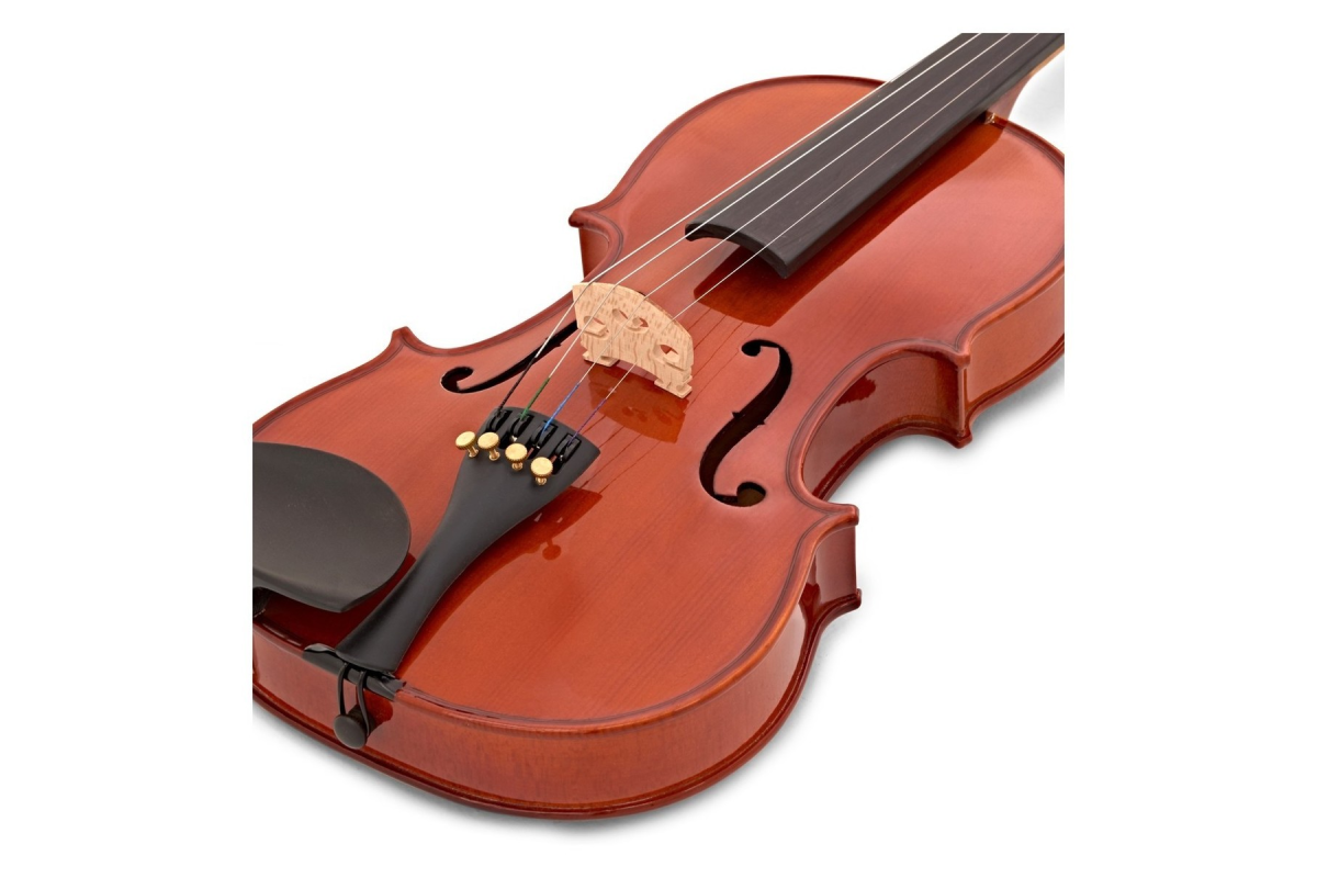 В отличие от большинства бюджетных скрипок, эта модель изготовлена в точном соответствии со спецификациями и размерами, оснащена накладкой грифа и кольями из древесины твердых пород. В комплектацию входит привлекательный лёгкий кейс с коричневой нейлоновой обивкой и качественный деревянный смычок. Инструмент изготовлен из цельного дерева музыкальных пород и имеет исключительное соотношение цена/качество; не стоит даже близко сравнивать его с аналогичными по цене "изделиями".