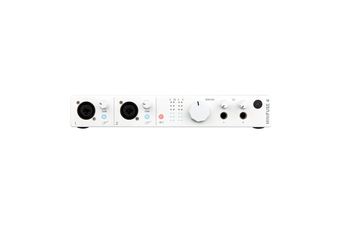 Arturia MiniFuse 4 – 4-канальный USB-аудиоинтерфейс с микрофонным и инструментальным усилителем, портом USB-A для подключения различных устройств и разнообразным пакетом комплектного программного обеспечения.