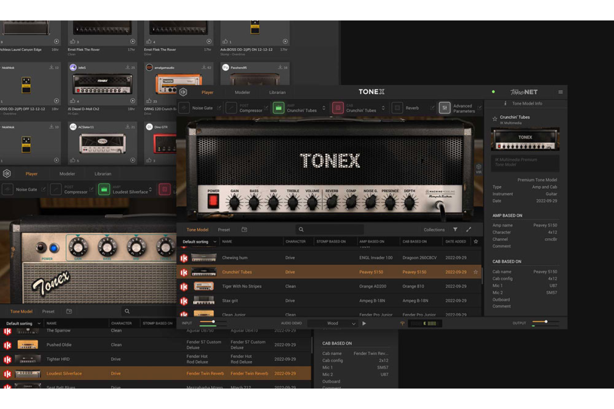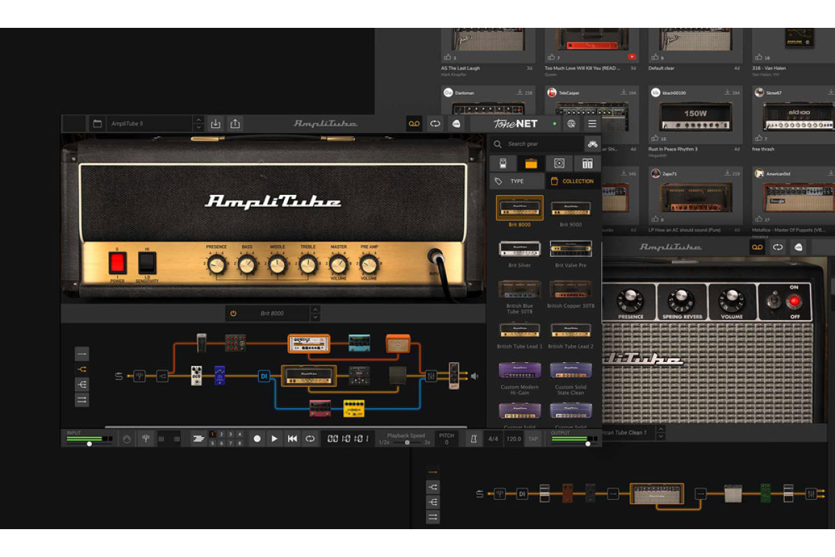 Обе программы включают в себя доступ к онлайн-сервису ToneNET, где в настоящее время имеется более 6000 пресетов AmpliTube и 10 000 моделей тонов TONEX, количество которых растет с каждым днем. Их можно бесплатно скачать и играть.