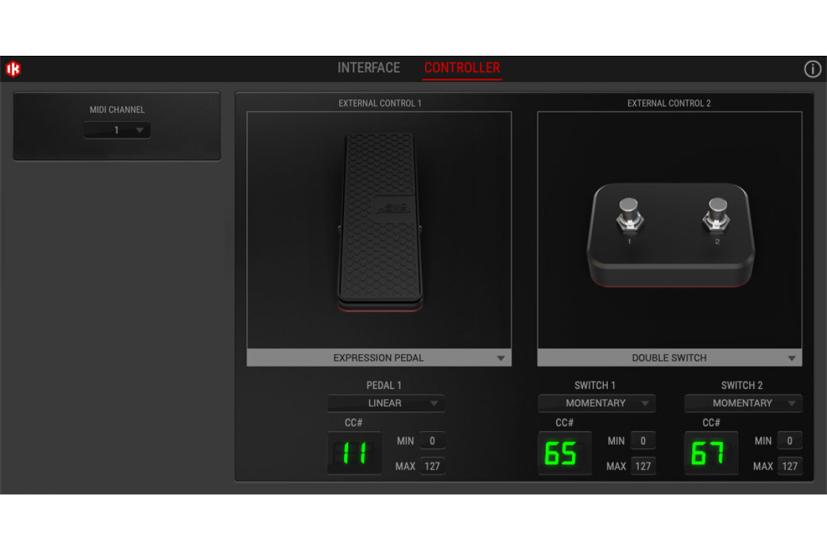 Также как и старшие братья, AXE I/O ONE имеет входы для подключения ножных переключателей или педалей громкости для управления прилагаемым без помощи рук программным обеспечением во время игры. MIDI-вход и выход AXE I/O ONE можно использовать для подключения напольных контроллеров или iRig Stomp I/O, чтобы добавить еще больше элементов управления в реальном времени.
