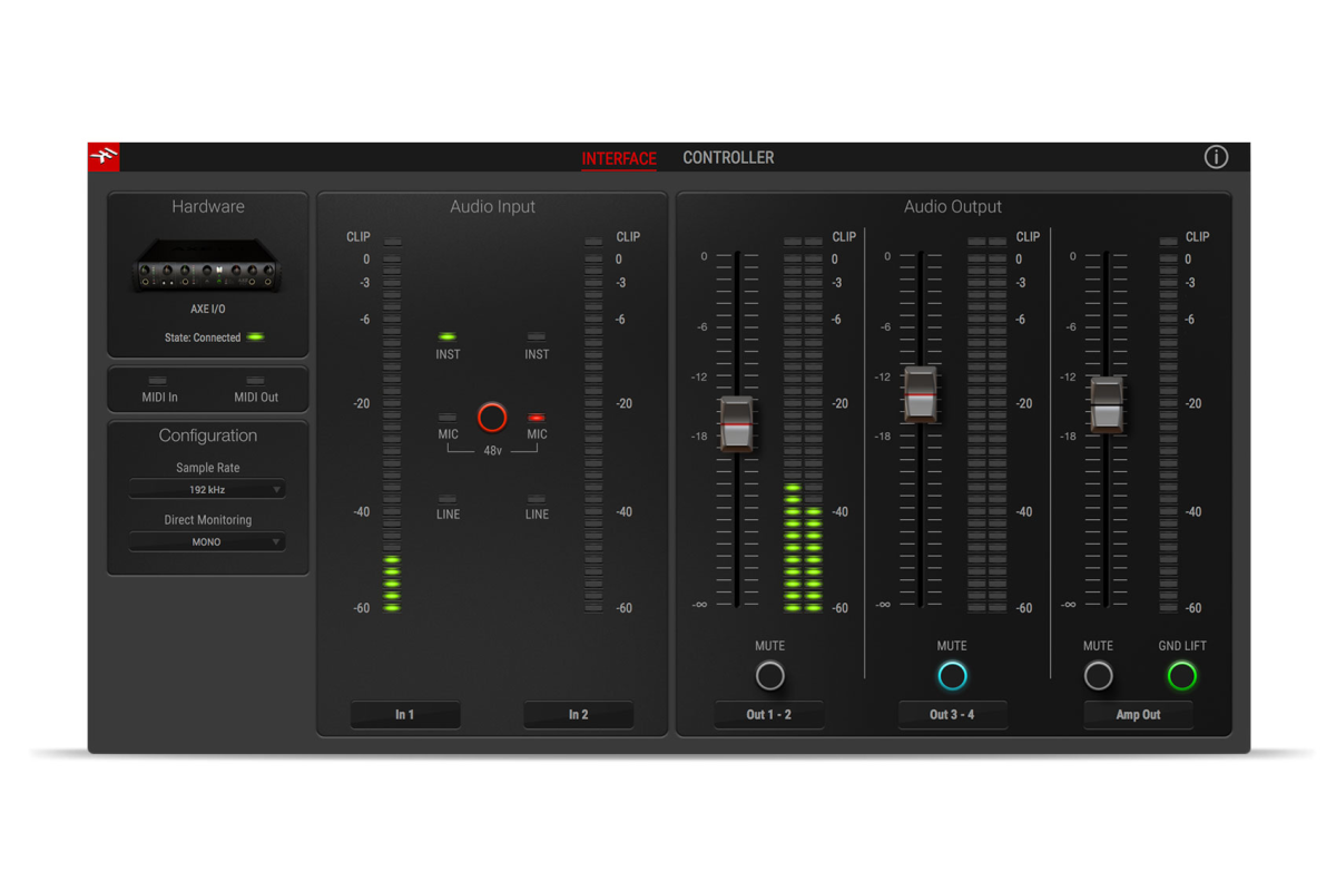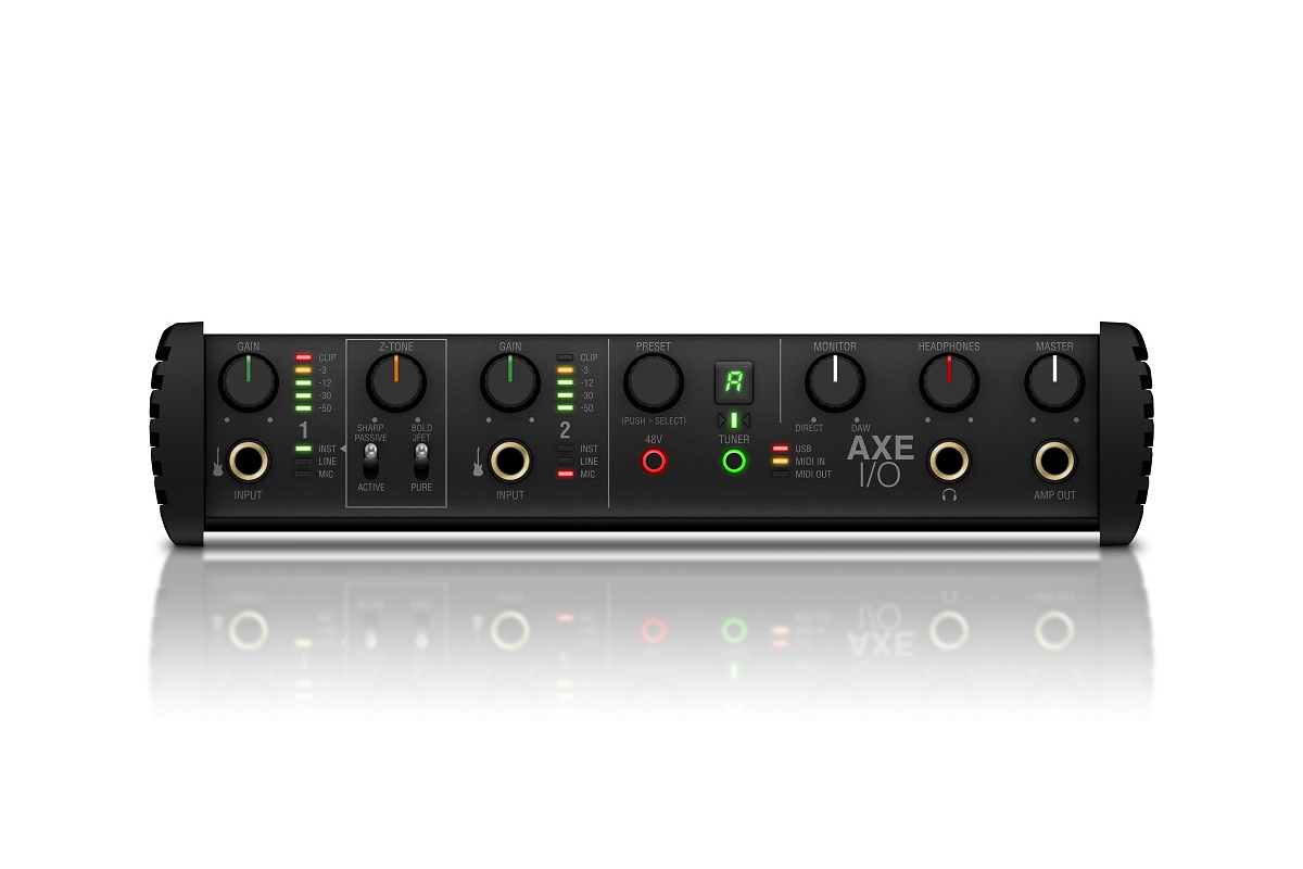 IK Multimedia AXE I/O представляет собой профессиональный аудиоинтерфейс типа 2in/5out и контроллер одновременно. Модель была спроектирована с учетом всех потребностей профессиональных гитаристов. Устройство способно обеспечить высокое качество звука и массу полезных функций, позволяющих сделать записи быстро, качественно и легко. Аудиоинтерфейс имеет тройную топологию и полностью дискретную входную цепь с входными каскадами типов Pure и Jfet. Для того чтобы перейти от прозрачного к трубчатому, необходимо воспользоваться одним переключателем. Благодаря выделенному Amp Out можно обрабатывать собственные записи с помощью подлинных гитарных усилителей и так называемых стомппсов, то есть никакие внешние аксессуары не понадобятся. Указанный выход малошумящий и успешно устраняет контуры заземления, обеспечивая тем самым предельно тихое повторное усиление. В устройстве есть тюнер, есть два фронтальных входа для гитар или басов на 1/4 дюйма, а также два тыловых комбинированных входа, оснащенных фантомным питанием. Последние разрешают подключать микрофоны и линейные инструменты. Есть выход на наушники для бесшумной работы. Регулятор типа Monitor объединяет прямой мониторинг со звуком с пользовательского компьютера для мониторинга с нулевой задержкой.