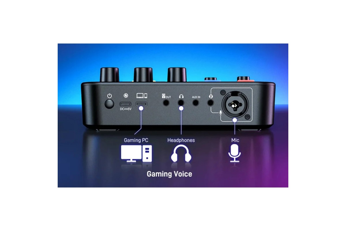 G1 Neo Gaming Audio Mixer – это новое решение в серии Maonocaster. Благодаря эффектному дизайну с RGB-подсветкой G1 Neo обеспечивает отличное качество звука, одновременно улучшая внешний вид вашей игровой и стриминговой установки. Его компактный дизайн позволяет легко интегрировать устройство в любое рабочее пространство, обеспечивая комфортный стриминг во время игры.