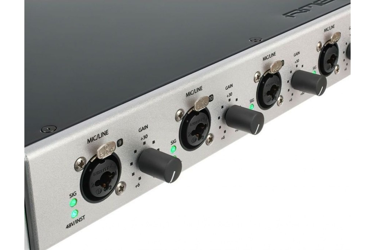 ME Fireface 802 – доказательство того, что компания действительно может производить качественные и надежные инструменты и устройства. 60 аудио каналов, высококлассные микрофонные усилители, эталонные преобразователи, матричный роутер сигналов с поддержкой сэмплинга до 192 кГц – все это RME Fireface 802. Активное подавление уровня джиттера, индивидуально переключаемые контрольные уровни с различными режимами анализа сигналов RME.