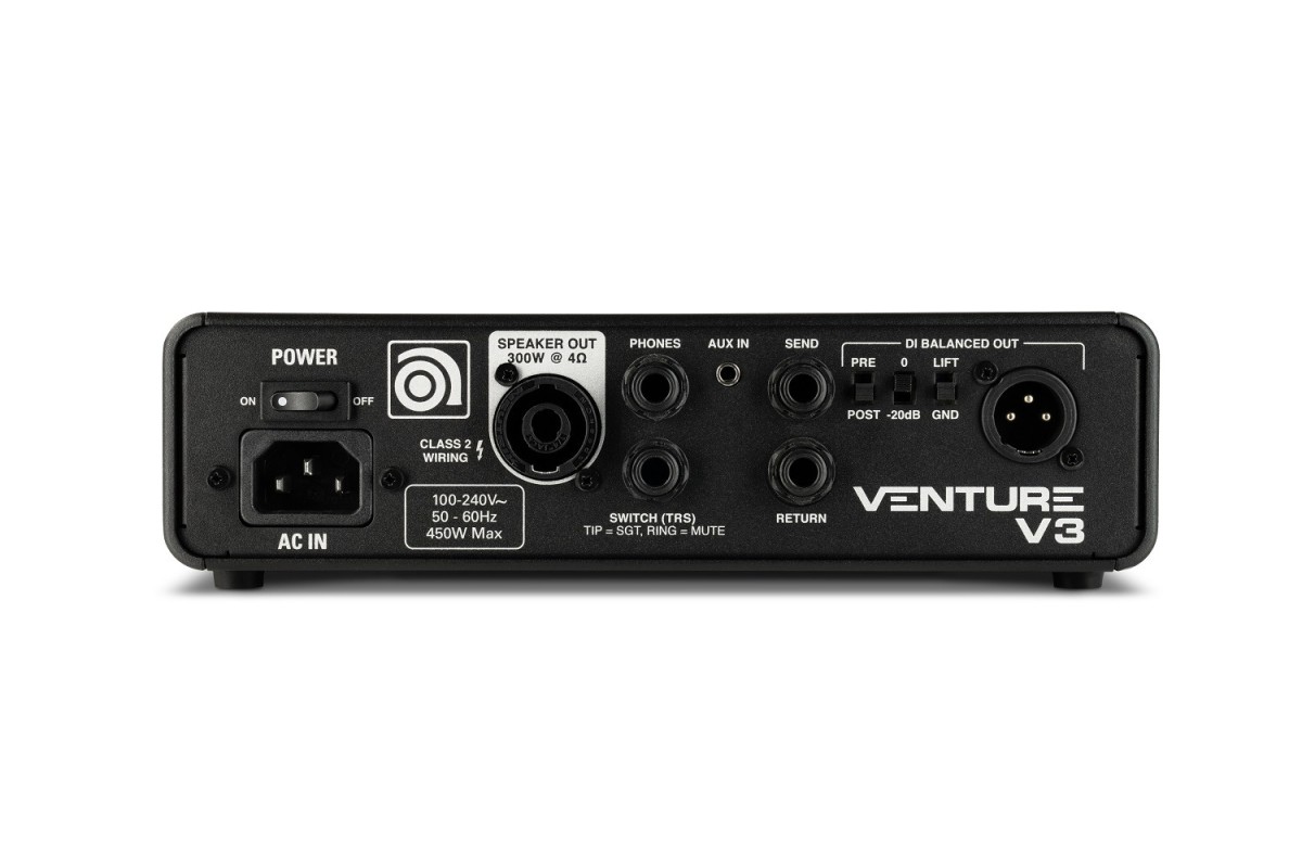 Ampeg Venture V3 – це надкомпактний та надлегкий бас-гітарний підсилювач із потужністю 300 Вт при 4 Ω, створений для мандрівних музикантів та тих, хто цінує портативність без компромісу в якості звуку. Завдяки Class D силовій секції він легко керує будь-яким кабінетом серії Venture або іншим басовим кабінетом на сцені чи репетиції.