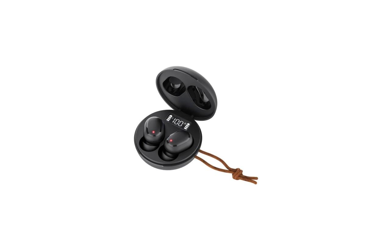 Светодиодный дисплей на зарядном футляре отображает заряд батареи каждого наушника и мощность зарядного кейса.