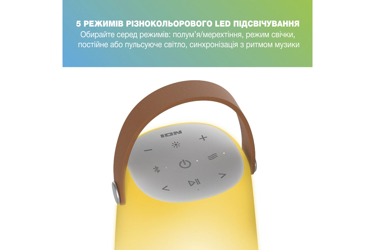 Благодаря 5 режимам многоцветной светодиодной подсветки, включая эффект мерцания свечи, вы сможете легко создать идеальную атмосферу для вашего мероприятия. Если вам нужна более спокойная ситуация, выберите один из встроенных атмосферных звуков, включая белый шум, океан, журчание ручья и многое другое. Встроенный аккумулятор Bright Max дает возможность использовать эту акустическую систему практически в любом месте. Вы также можете управлять функциями звука и освещения с помощью бесплатного приложения ION Sound XP на любом устройстве iOS или Android. Технология Multi-Sync позволяет легко управлять подключенными динамиками ION Audio (до 100шт), чтобы улучшить качество звука и атмосферу на открытом воздухе.