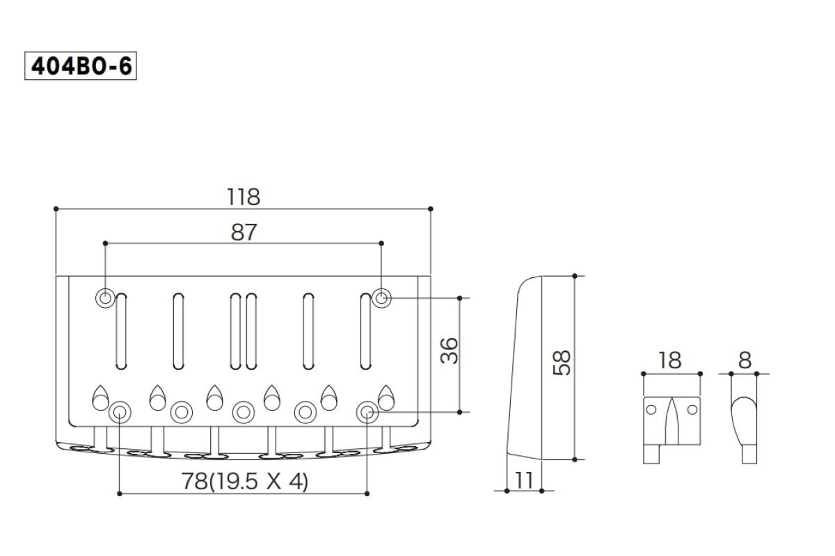 Бриджи для бас-гитар серии 404BO имеют основу из цинка для максимально натуральной звукопередачи и латунные седла для увеличенного сустейна.
