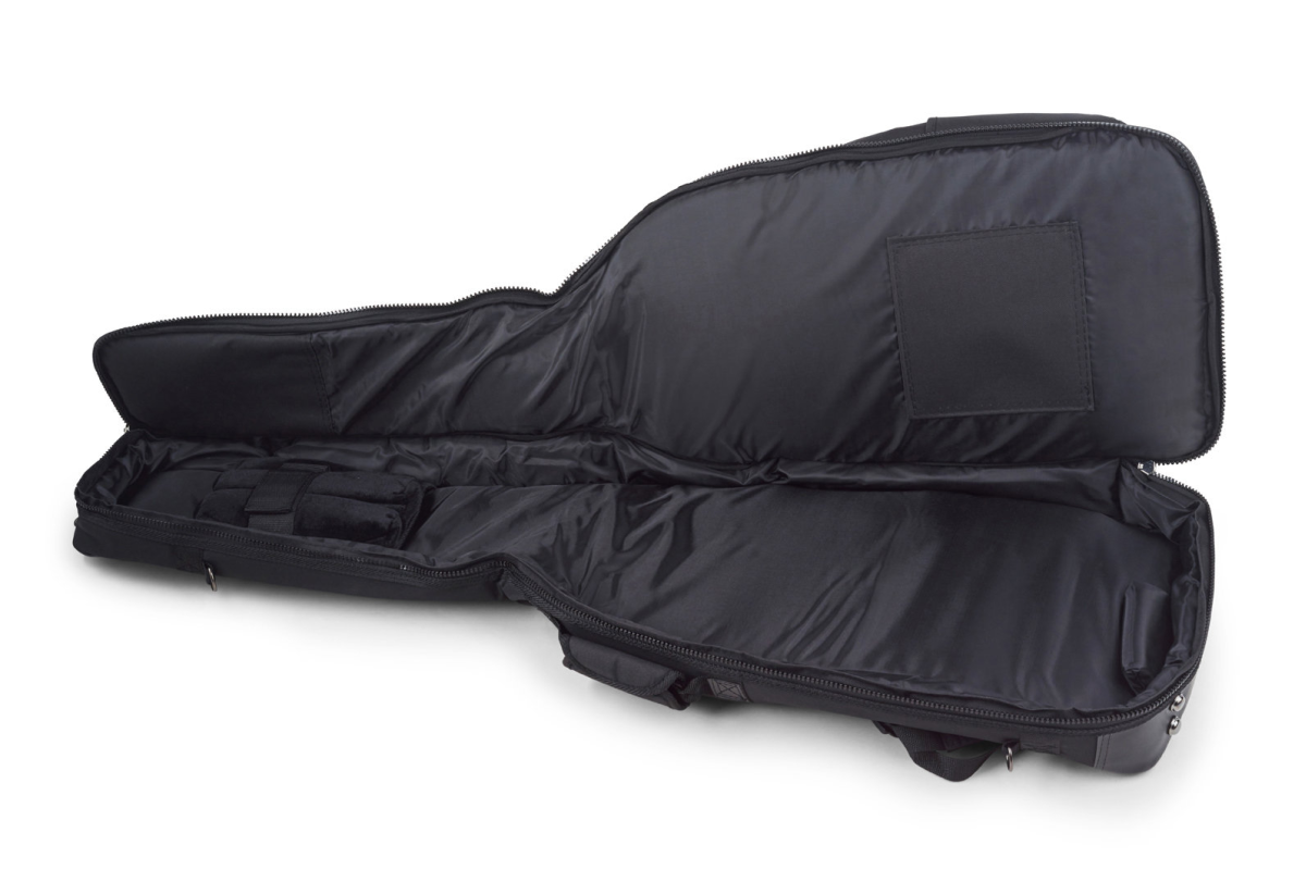 Для того чтобы гарантировать комфорт при переноске, задняя спинка чехлов Cross Walker имеет эргономичную форму и изготовлена из дышащего материала, а ремни оснащены смягчающими подкладками. Пластиковая вставка ПВХ с металлическими ножками внизу чехла позволяет безопасно поставить его в вертикальном положении. Помимо съемного рюкзака (которого ты можешь носить отдельно от чехла), RockBag Cross Walker оснащен дополнительным карманом для аксессуаров, так что теперь тебе не понадобится дополнительная сумка для того, чтобы вместить все твои педали и кабели.