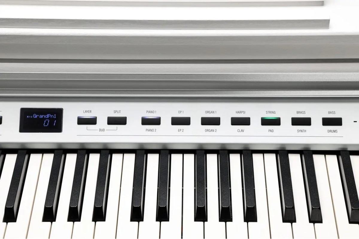 CUP P1 имеет все возможности настоящего фортепиано с полудемпферным сустейном, состенутой и смягчающей педалью.