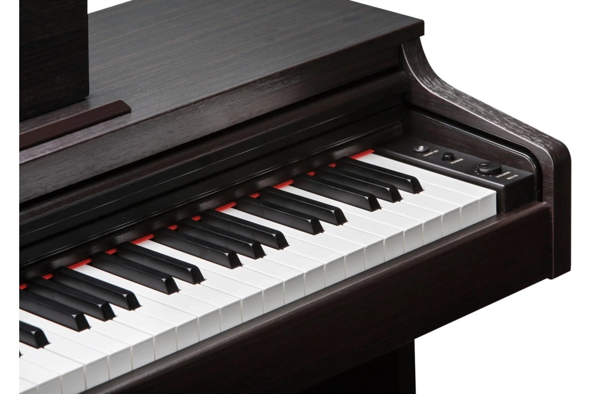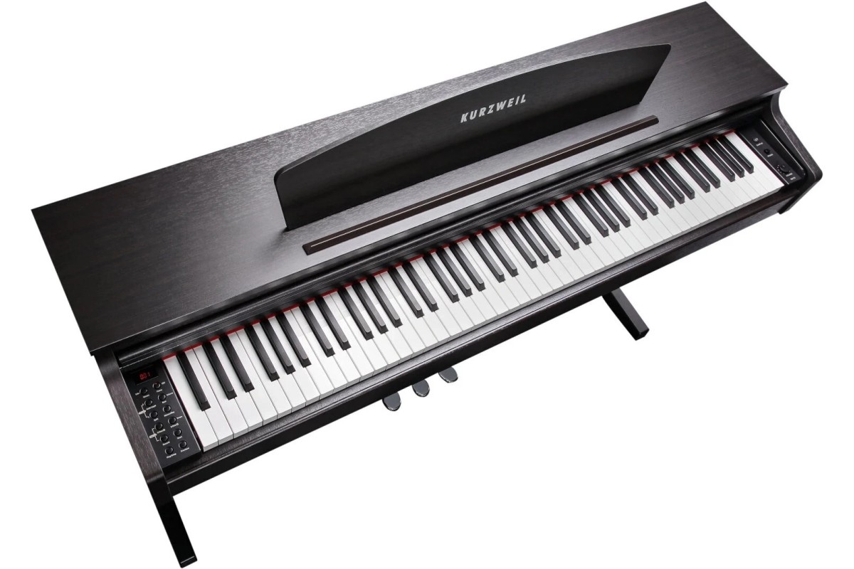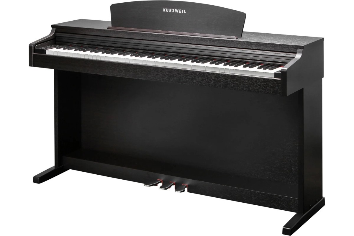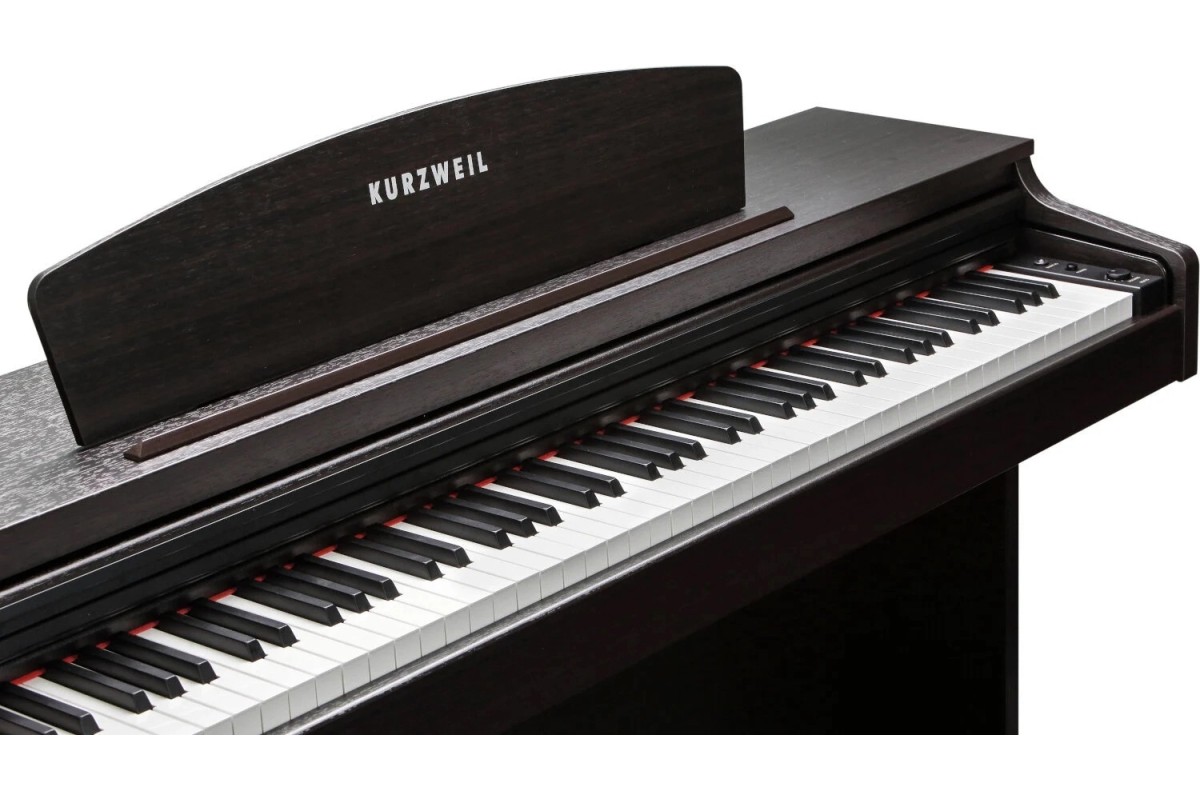 Kurzweil M115 SR – цифровое пианино с полновзвешенной молоточечной механикой и 10 вариантами чувствительности к нажатию на выбор. Наслаждайтесь 30 пресетами различных акустических тембров фортепиано, электропиано, органов и оркестровых, а также полным банком на 128 звуков стандарта General MIDI. Полифония 189 голосов. Выбирайте из 30 паттернов ритмов в разных стилях и режиме метронома. Комбинируйте звуки, разделяя клавиатуру пополам, в режиме Duo или наслаивайте их. Записывайте 1 трек до 4000 нот с помощью рекордера. Режим обучения. Передача сигнала MIDI через USB. Корпус цвета палисандр со встроенными тремя педалями Sustain, Sostenuto, Soft, двойной 25 Вт стереосистемой и удобной банкеткой в комплекте.