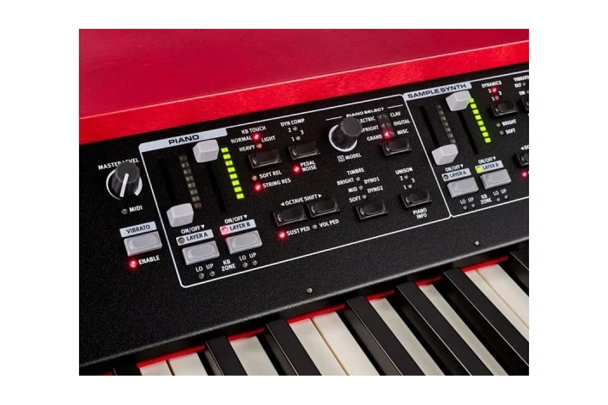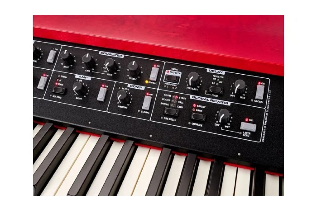 Nord Grand имеет отдельные LED-фейдеры для каждого слоя, а также ручки и кнопки для всех основных функций, необходимых для живого исполнения. Выполнение таких задач, как создание слоев и разделов, добавление эффектов или транспонирование инструмента, может осуществляться мгновенно.