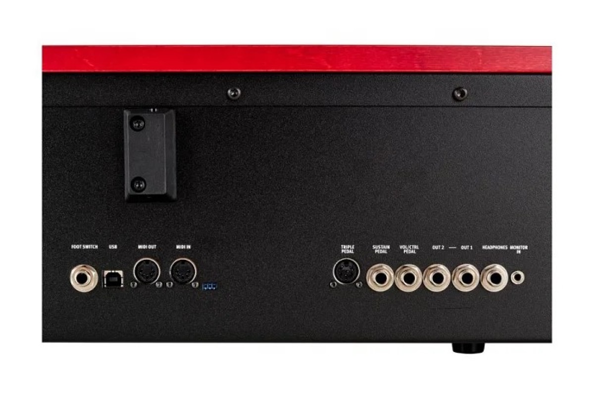 1 вход для сустейн-педали - ¼", 6.35 мм разъем. Совместим с Nord Triple Pedal или мгновенной педалью