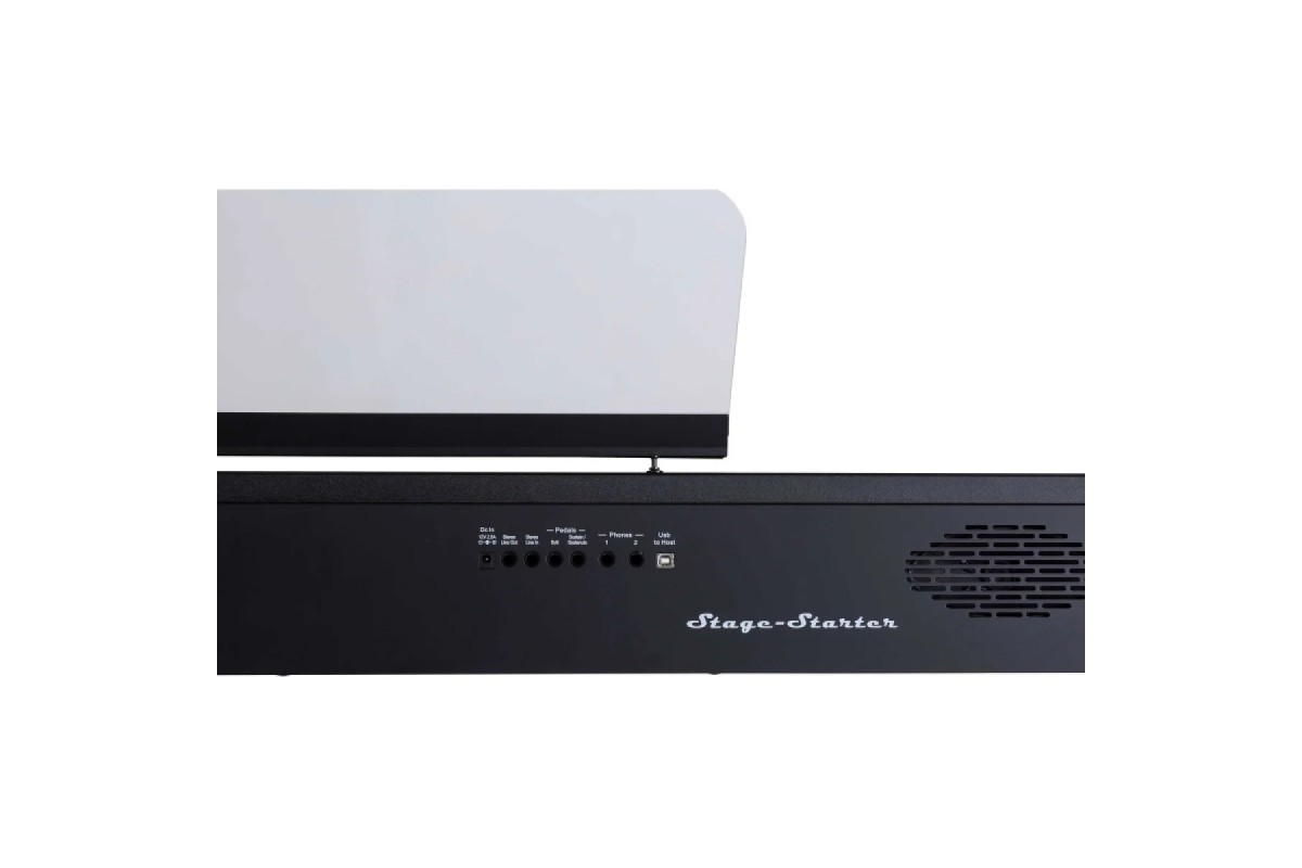Цифровое пианино Orla Stage Starter обладает достаточно мощной акустической системой. Она состоит из пары широкодиапазонных динамиков и 2-х усилителей по 12 Ватт каждый. Качественные диффузоры без каких-либо искажений и потерь передают все частоты, будь то низкие или высокие, причем не важно, как громко вы играете. Существует регулятор, с помощью которого громкость выставляется на желаемый уровень.