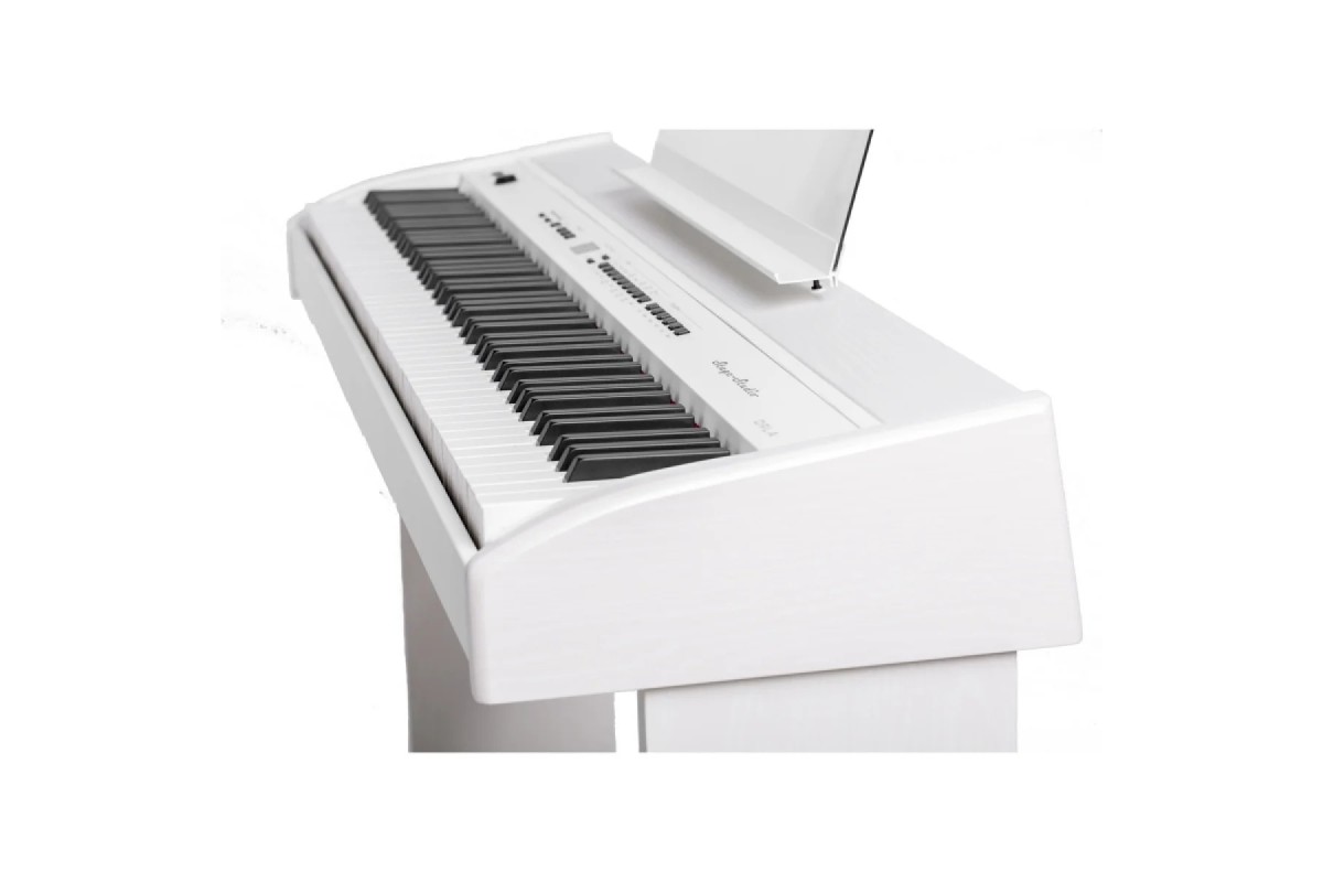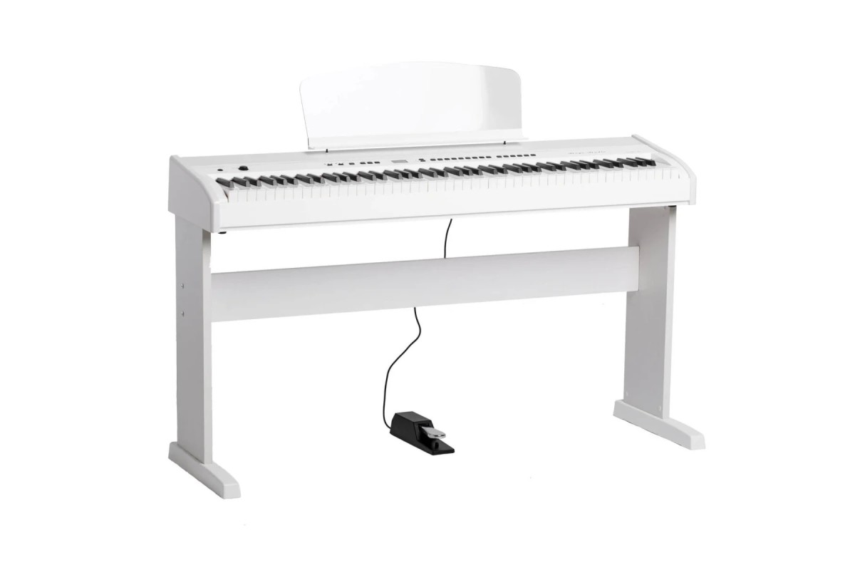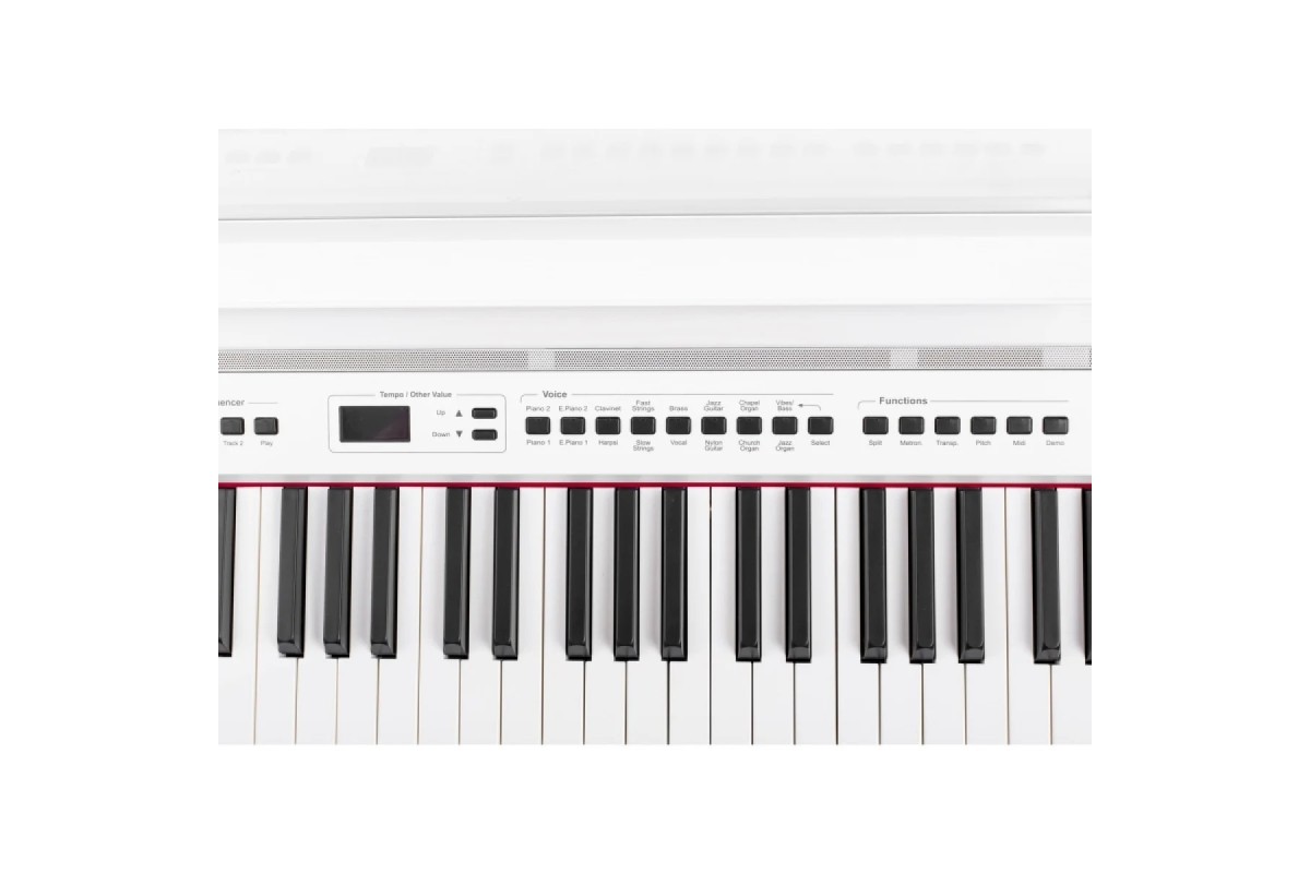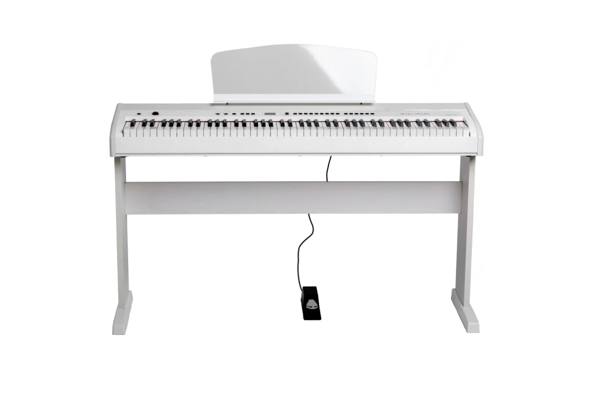 Полноразмерная клавиатура на 88 клавиш позволяет выполнять пьесы по всему диапазону, а чувствительность к касанию обеспечивает выразительную игру. Инструмент позволяет записывать до 5 пользовательских песен. Подключаемые педали упрощают выполнение, а 20 тембров разнообразят игру.