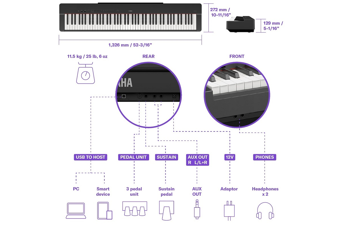 Цифровые пианино Yamaha серии P полюбились пианистам во всем мире благодаря ощущению комфорта акустического пианино в инструменте с более удобными размерами и весом.