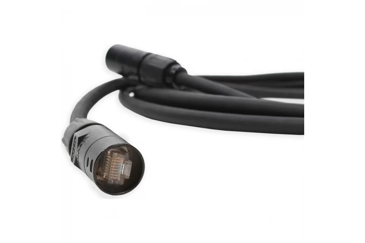 Этот кабель с разъемами RJ45 etherCON передает цифровой аудиосигнал MADI между консолями, оборудованными Cat6 и стейджбоксами.