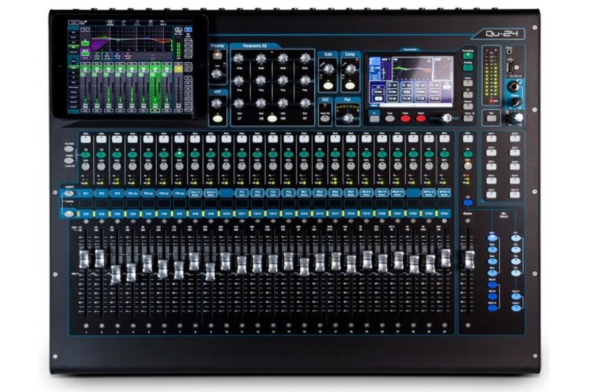 С помощью бесплатного приложения Qu-Pad можно управлять всеми основными параметрами Qu-24 дистанционно с помощью iPad: настраивать мониторные миксы прямо на сцене, свободно перемещаться по залу при настройке портальной системы и затем управлять миксами во время концерта по любому месту в зале. Qu-Pad подключается к микшеру с помощью Wi-Fi роутера, который подключается к Ethernet-порту на задней панели микшера.