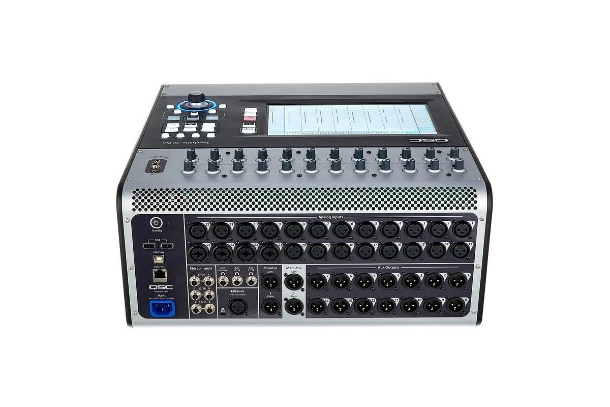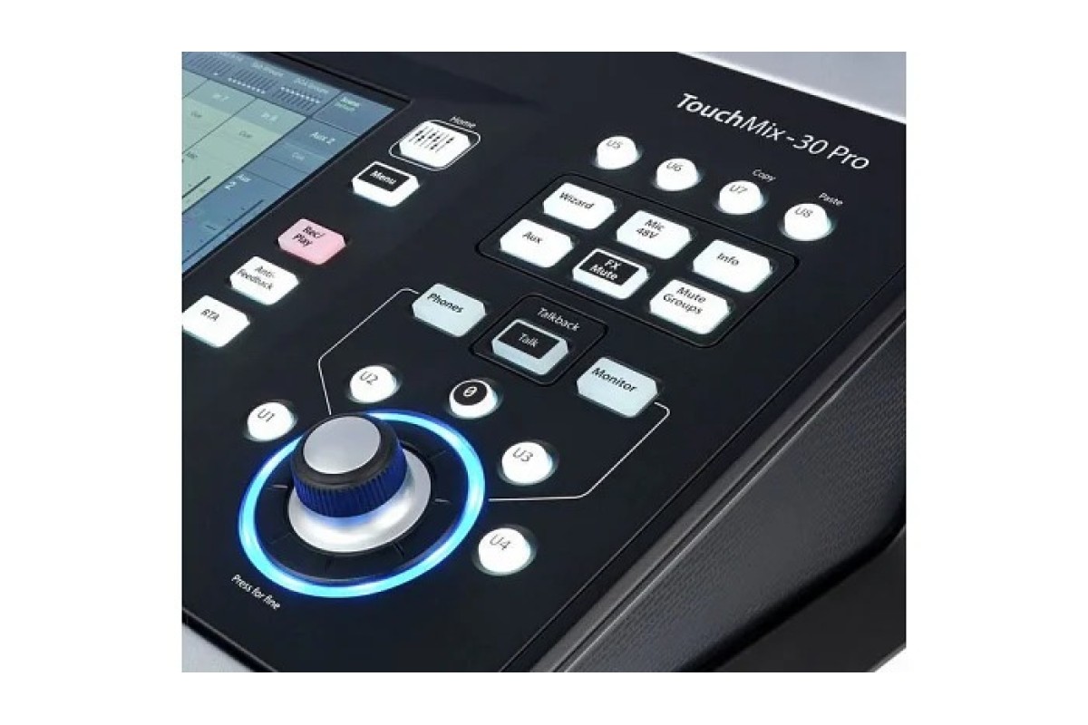 Благодаря уникальному и мощному графическому интерфейсу с мультисенсорным экраном, TouchMix-30 Pro является полноценной, полнофункциональной цифровой микшерной консолью, достаточно компактной для переноски. Параметры микшера могут регулироваться прямо на экране или удобным вращающимся энкодером, а также регулироваться с помощью кнопок.