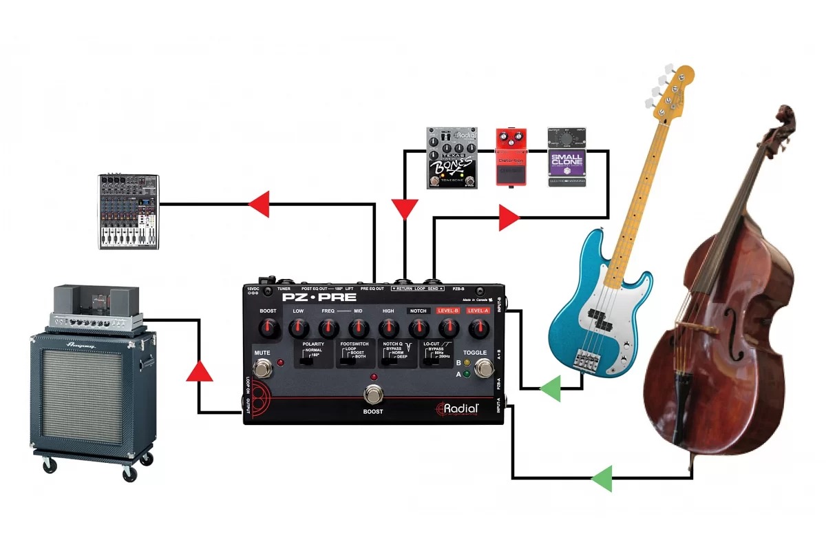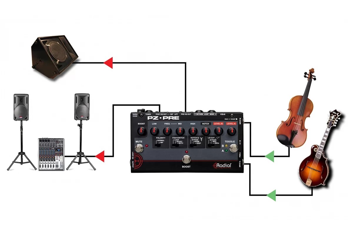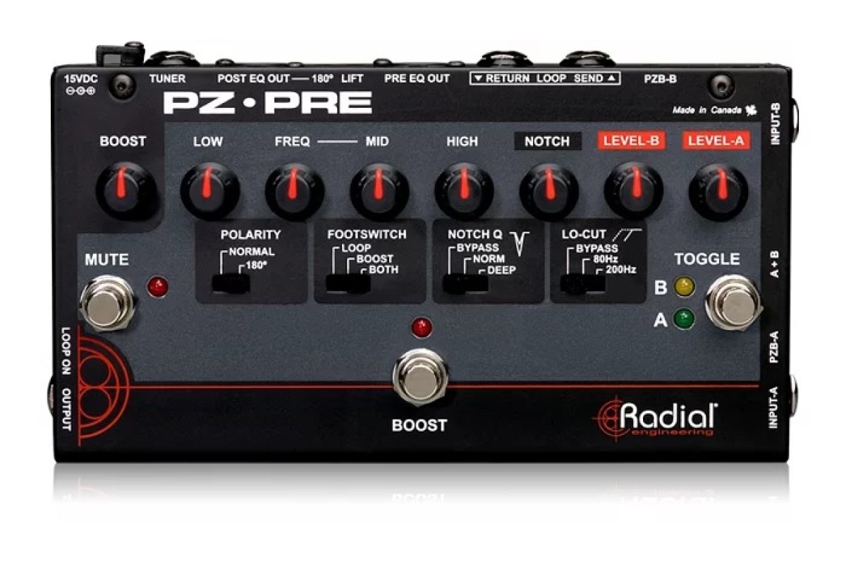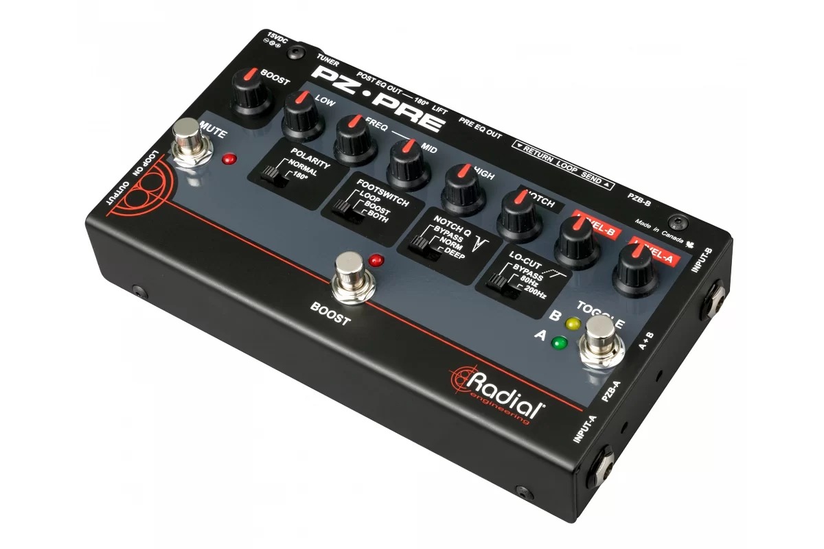 Radial PZ-Pre – это мощный усилитель для акустических инструментов. Очарование заключается в сочетании высокопроизводительных 100% дискретных пьезоусилителей PZB класса A, сверхтихой схемы усилителя, адаптирующейся к любой системе звукоснимателей, и множеству вариантов подключения, которые обеспечат вам полный контроль. PZ-Pre оснащен двумя входами для быстрой смены инструментов на сцене или для микширования двух звукоснимателей. Мощный полупараметрический эквалайзер и устраняющие обратную связь элементы управления позволяют пользователю точно настроить звук, устраняя неприятные частоты. PZ-Pre предлагает выходы как до, так и после эквалайзера и может использоваться для отправки необработанного сигнала в дом и индивидуального звука исполнителя для мониторов.