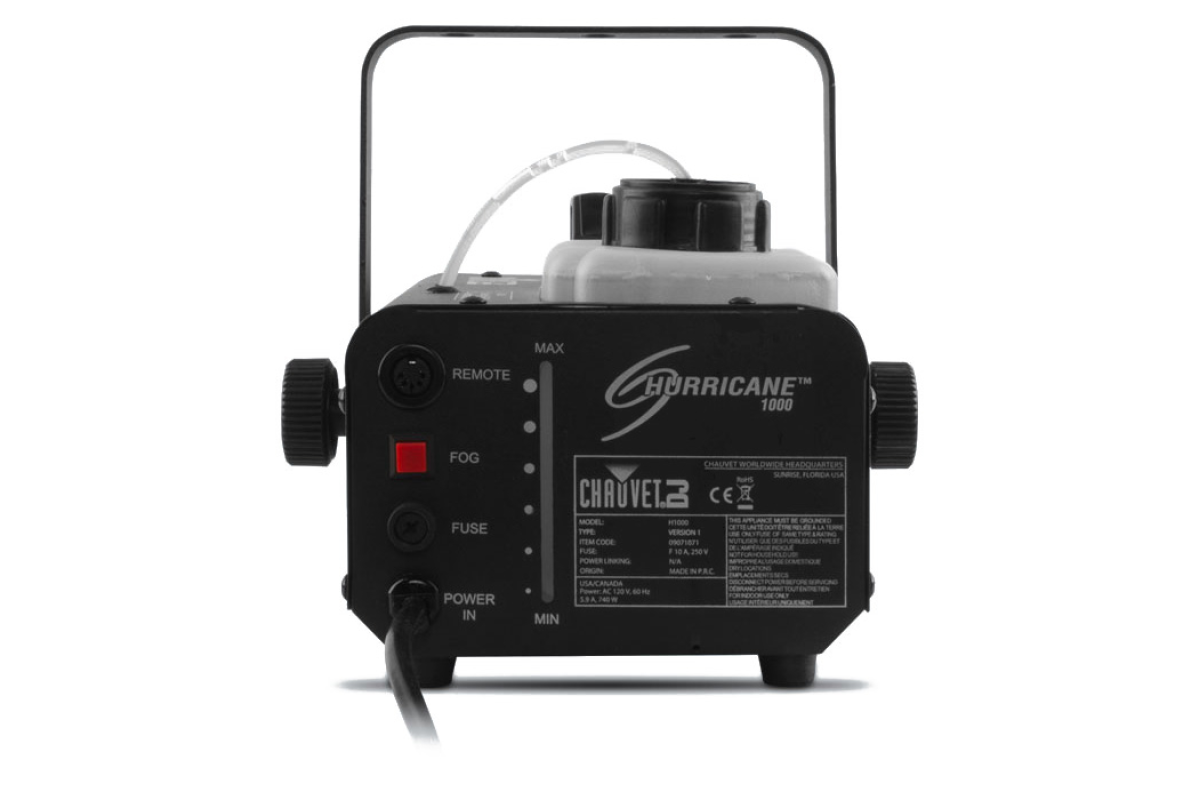 CHAUVET H1000 Hurricane 1000 – профессиональная дымная машина для сцены, концертов, клубов, вечеринок и шоу, сочетающая портативность, компактность и высокую производительность . Этот генератор тумана обеспечивает быстрый нагрев и эффективную работу с жидкостью для дыма, что делает его идеальным для использования как в небольших студиях, так и на больших концертных площадках.