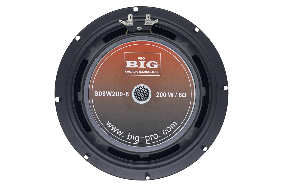 Динамик BIG S08W200-8 – это 8-дюймовый мощный громкоговоритель со стальным каркасом, предназначенный для профессионального и домашнего использования. Благодаря мощности 200 Вт RMS и чувствительности 95 дБ он обеспечивает громкое и четкое воспроизведение звука даже на больших площадях. Широкий частотный диапазон 30 Гц – 5 кГц позволяет передавать глубокие басы и средние частоты без искажений. Динамик оснащен 40 мм катушкой и магнитом весом 40 OZ , что гарантирует стабильную работу при высоких нагрузках. Сопротивление 8 Ом обеспечивает совместимость с большинством усилителей и аудиосистем.