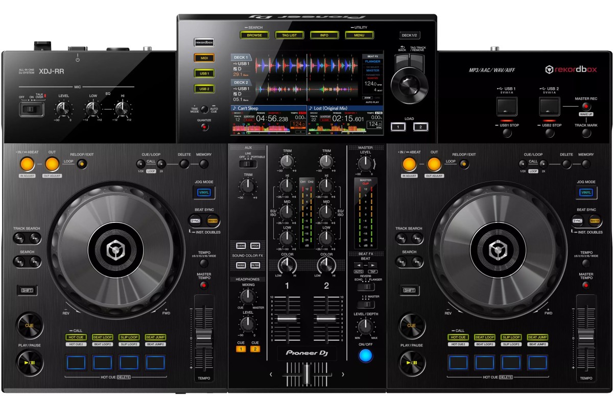 DJ контроллер Pioneer XDJ-RR – это 2-канальная система «все-в-одном» с 7-дюймовым полноцветным дисплеем для rekordbox с макетом и функциями от стандартной конфигурации NXS2, идеальная автономная бюджетная система для начинающих ди-джеев. два USB-порта для воспроизведения дорожек непосредственно из USB-накопителя. секция микшера оснащена профессиональным FX, таким как Beat FX и Sound Color FX, секции подают – Hot-Cues, Beat-Loop, Slip Loop и Beat Jump.