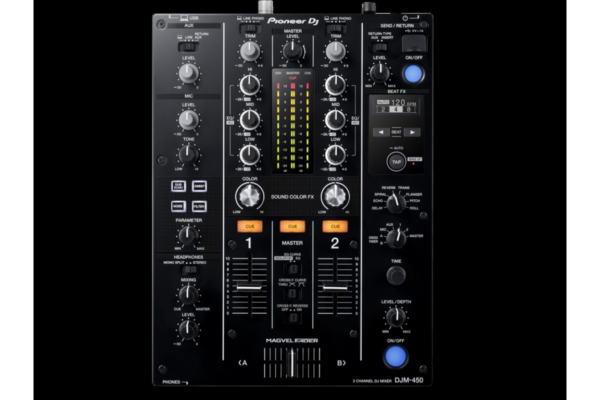 DJ-микшер Pioneer DJM-450 представляет собой высококачественную 2-канальную версию Pioneer DJM-900NXS2 с эргономичным дизайном, основанную на том же интуитивном интерфейсе управления, включая DSP. Каждый элемент управления данной модели находится в оптимальном положении, чтобы обеспечить удобный доступ ко всем функциям и параметрам во время выступа. DJM-450 оснащен встроенным 64-битным цифровым сигнальным процессором, использующим технологию сглаживания для обеспечения оптимального качества звучания. Неважно, играете ли вы с аналогового или цифрового источника, микшер DJM-450 придаст вам теплый и высококачественный звук.