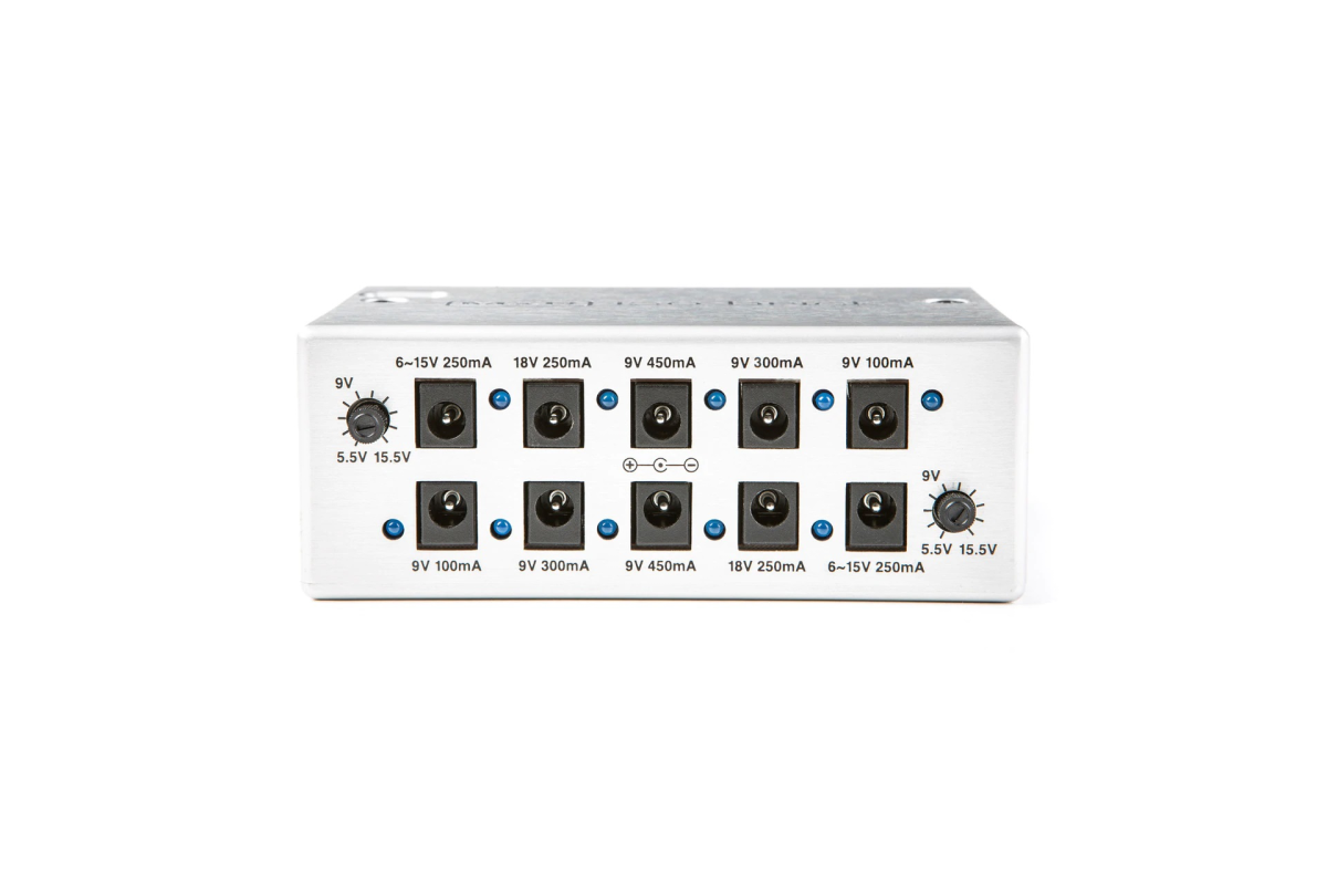 Независимо от полярности, или от того, аналоговая у вас педаль или цифровая – Iso-Brick способен справиться с любой из них. Инженеры MXR создали настоящий шедевр в области блоков питания. Судите сами: 2 выхода 9В (100мА), 2 выхода 9В (300мА), два выхода 9В (450мА), два выхода 18В (250мА) и, на закуску, два выхода с регулируемым вольтажом от 6В до 15В (25). Регулируемые выходы могут использоваться не только для гитарных радиосистем, но и для эмуляции просевшего питания, имитируя подсевшую батарейку – подобное звучание очень любим многими гитаристами. Как и положено, соединительные кабели и сетевой адаптер входят в комплектацию.