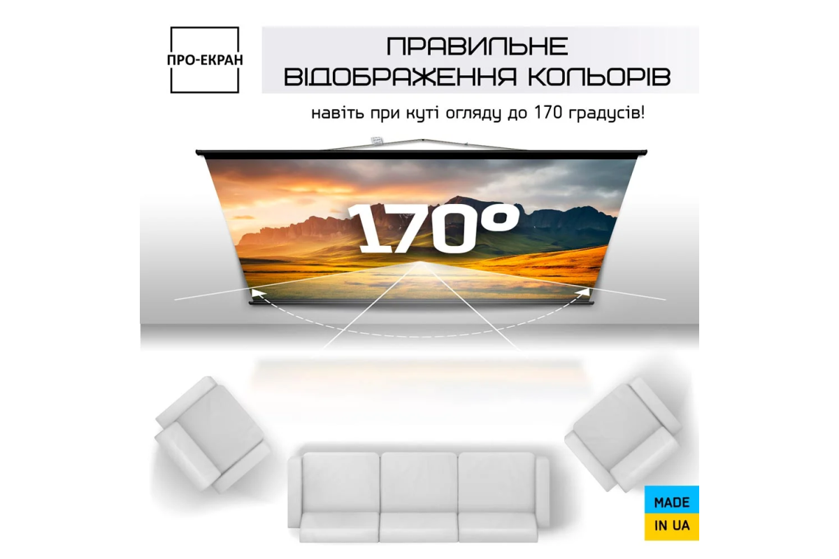 Для изготовления экранов ПРО-экран используется высококачественное белое полотно ПВХ с коэффициентом усиления 1 и натуральной цветопередачей. Матовая поверхность экрана гарантирует отсутствие бликов, обеспечивает высокую яркость и большие углы обзора до 170°.