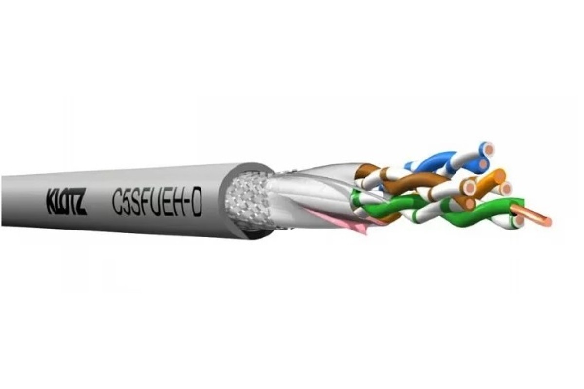 Кабель содержит 4 витые пары, сплетенные вместе, покрытые двойным общим экраном и защищенные оболочкой. Кабель предназначен для внутренней стационарной прокладки при значительных электромагнитных помехах.