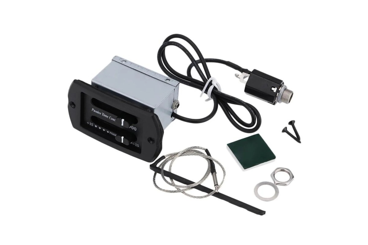 Звукосъемник для акустической гитары с регулировкой уровня громкости и яркости звучания.