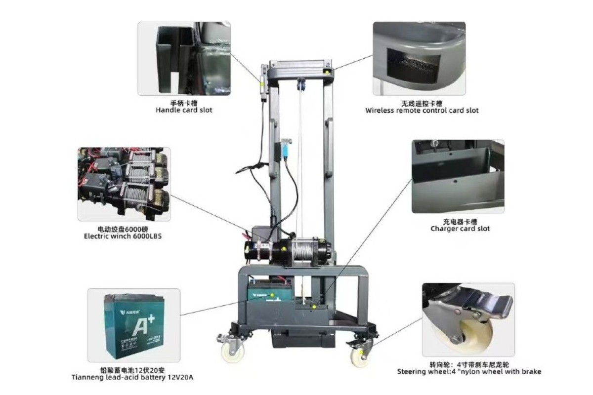 Цей штабелер підходить для підйому, транспортування та складування вантажів, забезпечуючи ефективність, безпеку та зручність при роботі в невеликих приміщеннях.