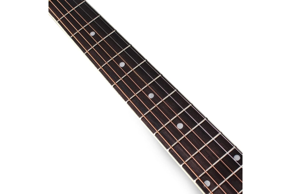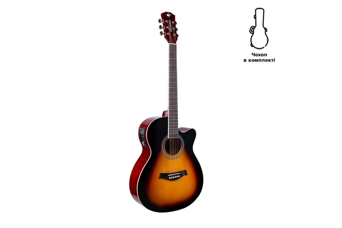 Alfabeto AG110EQ – это 40” гитара аудиториум с верхней декой из елки и нижней декой/обечайками из липы. Материал грифа – катальпа. Глянцевая обработка. выступов. Канты из ABS-пластика придают корпусу прочности и защищают торцы деки от повреждений.