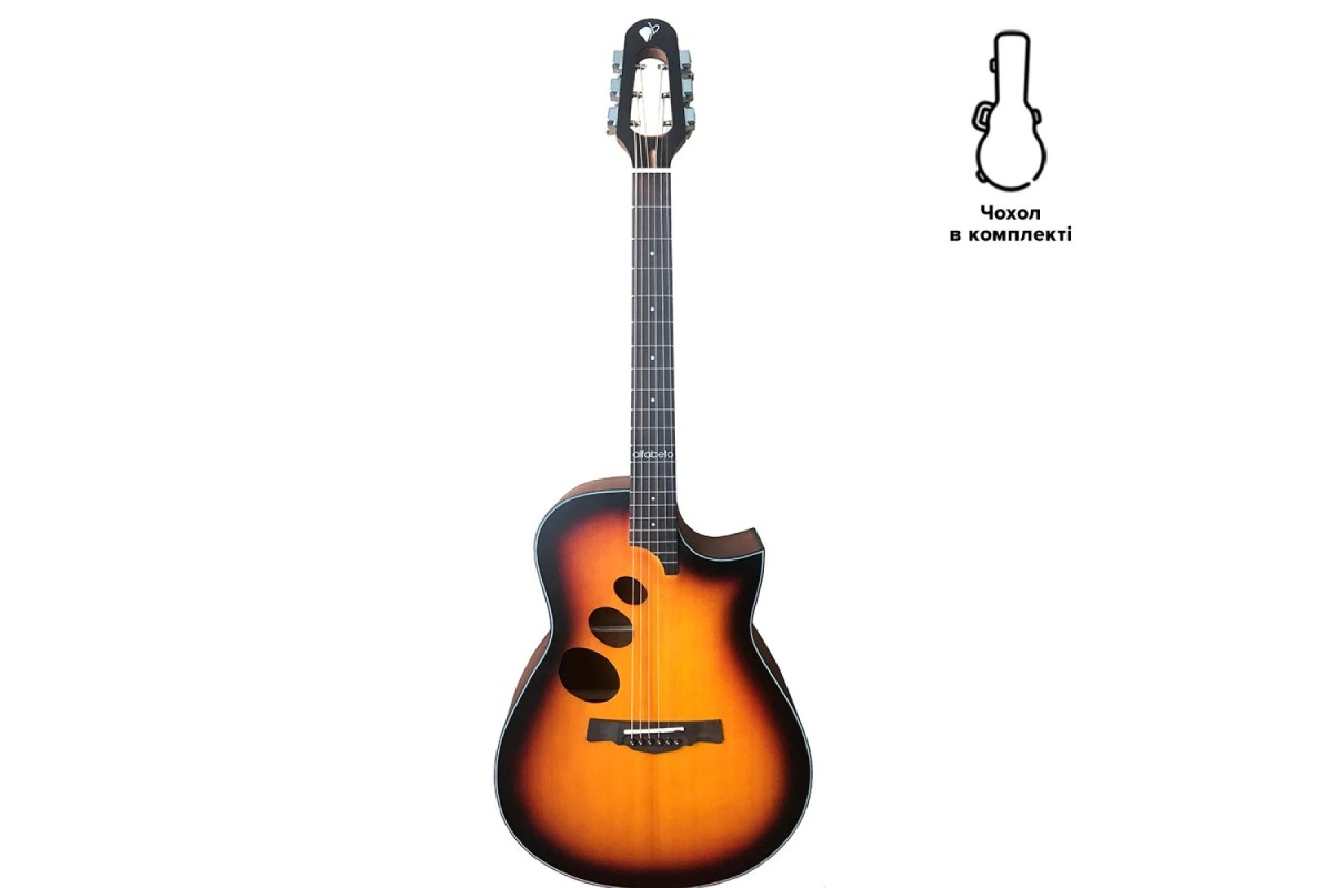 Для ищущих футуристическую электроакустическую гитару со смещенными звуковыми отверстиями Alfabeto Gamma станет отличным вариантом. К тому же, в комплекте идет элегантный чехол хорошего качества, поэтому Вам не придется дополнительно покупать этот важный аксессуар.