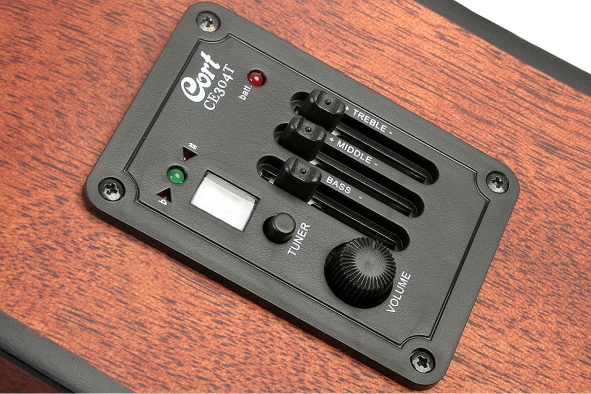 AD810E оборудована встроенным керамическим пьезозвукоснимателем и предусилителем Cort CE304T. Трехполосный эквалайзер позволяет точно отрегулировать звучание инструмента, а хроматический тюнер с LED дисплеем позволяет быстро и удобно настроить гитару даже на самой темной сцене.