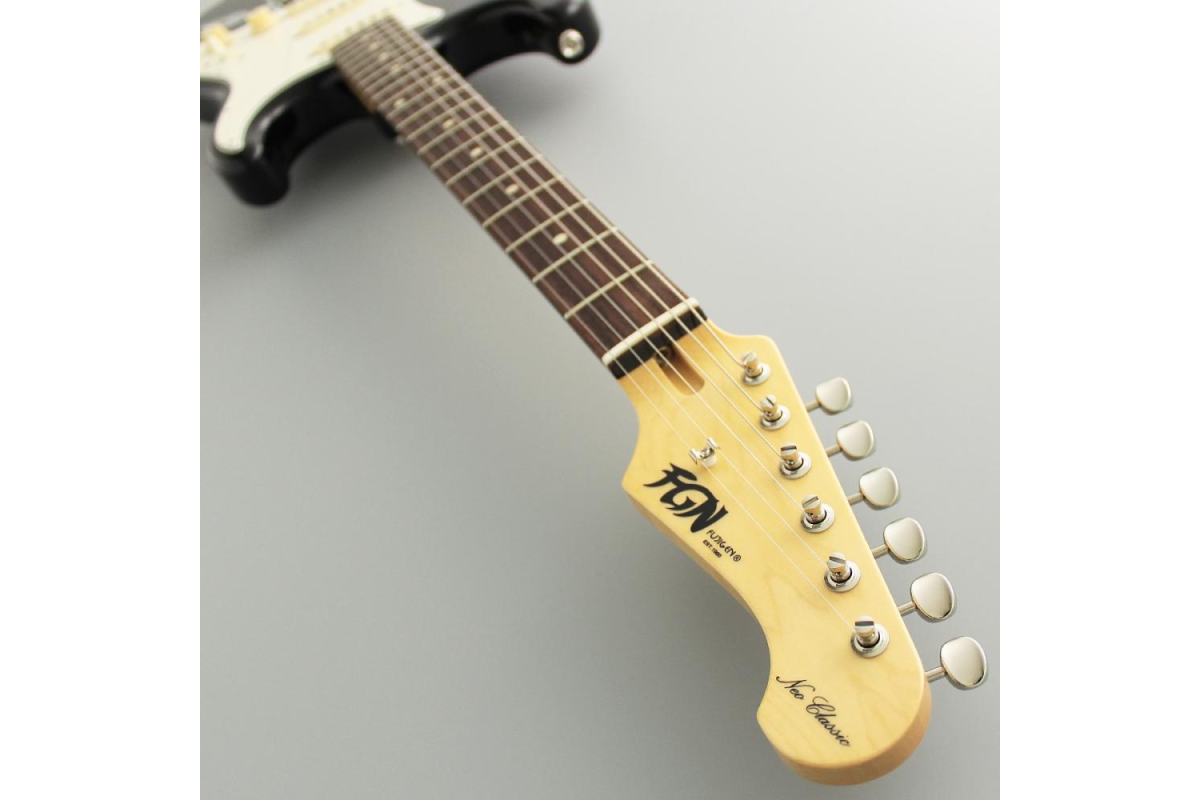 FGN уделили особое внимание деталям: обработка краев ладов (CFS) для плавной аппликатуры, светящиеся боковые маркеры, замковые колки GOTOH Magnum Lock, тремоло на двух ножах и глянцевое лаковое покрытие Top Lacquer Gloss.