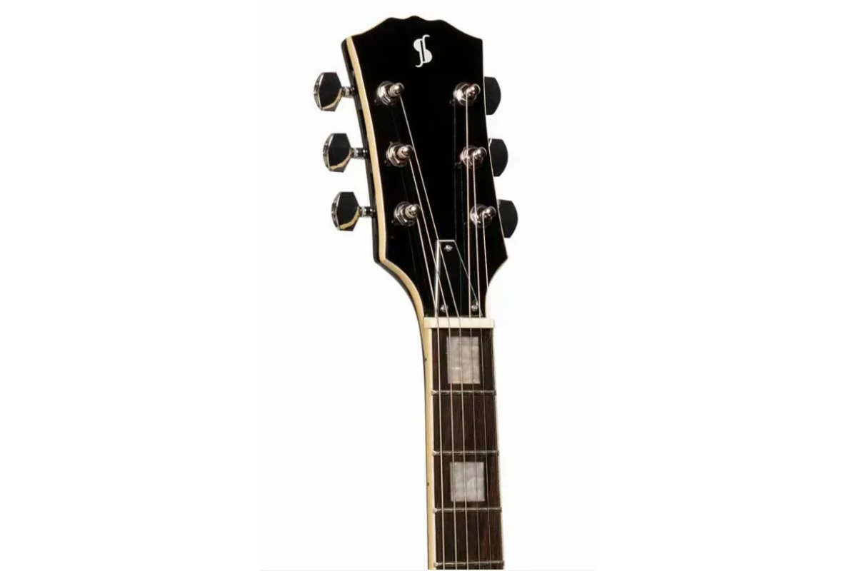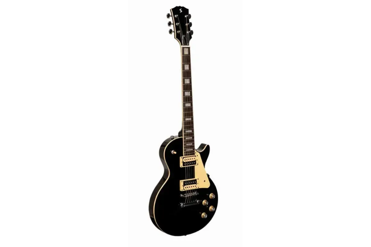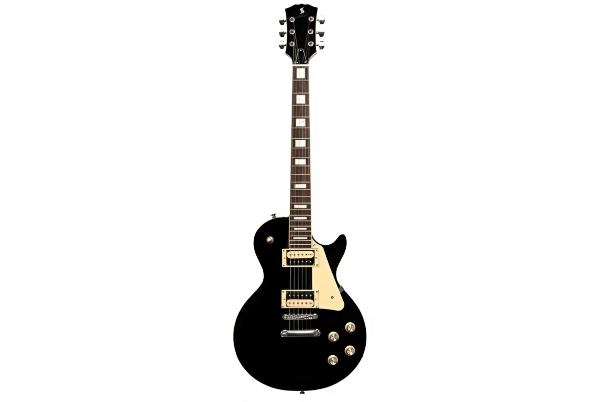 STAGG SEL-STD – шестиструнная винтажная электрогитара серии Standard с арочным топом в корпусе типа «Les Paul» в красивой глянцевой черной отделке. Ее корпус полностью выполнен из красного дерева. Гриф – вклеенный имеет глянцевую отделку и сделан из красного дерева с накладкой из палисандра. В гитаре 22 лада, маркеры ладов выполнены в виде перламутровых прямоугольных блоков.
