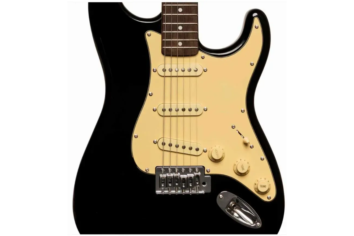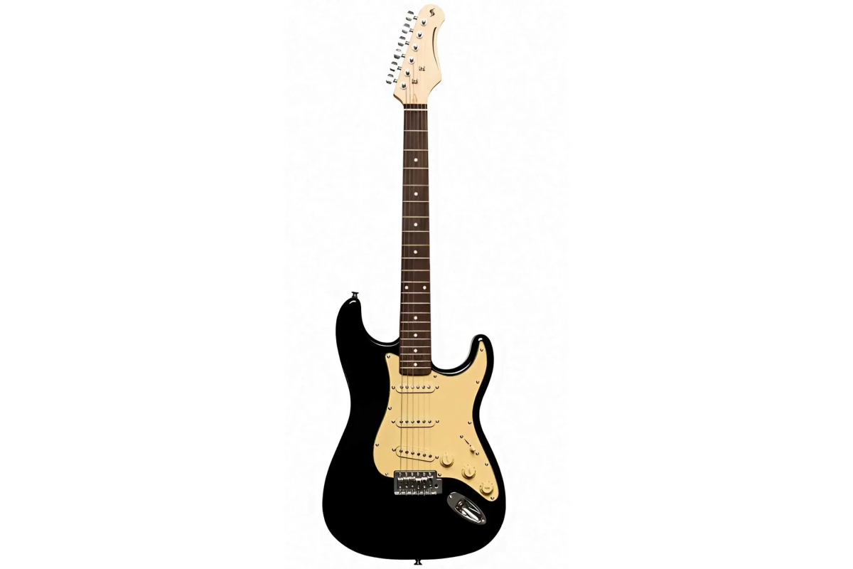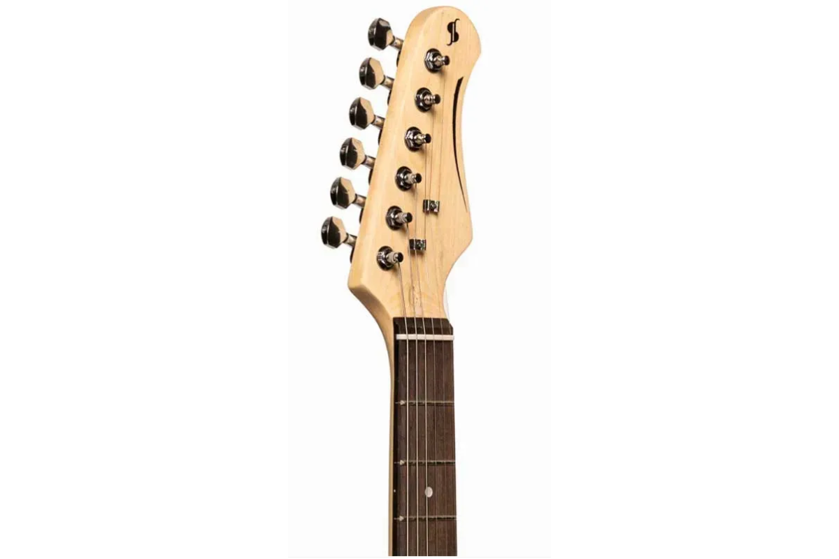 STAGG SES-30 – шестиструнная винтажная электрогитара серии «S» в корпусе типа «стратокастер» в красивой глянцевой черной отделке. Ее корпус полностью выполнен из массива павловнии. Гриф на болтовом креплении с легким доступом к последним ладам имеет матовую обработку и сделан из клена с накладкой из палисандра. В гитаре 22 лада, маркеры ладов выполнены в виде белых точек.