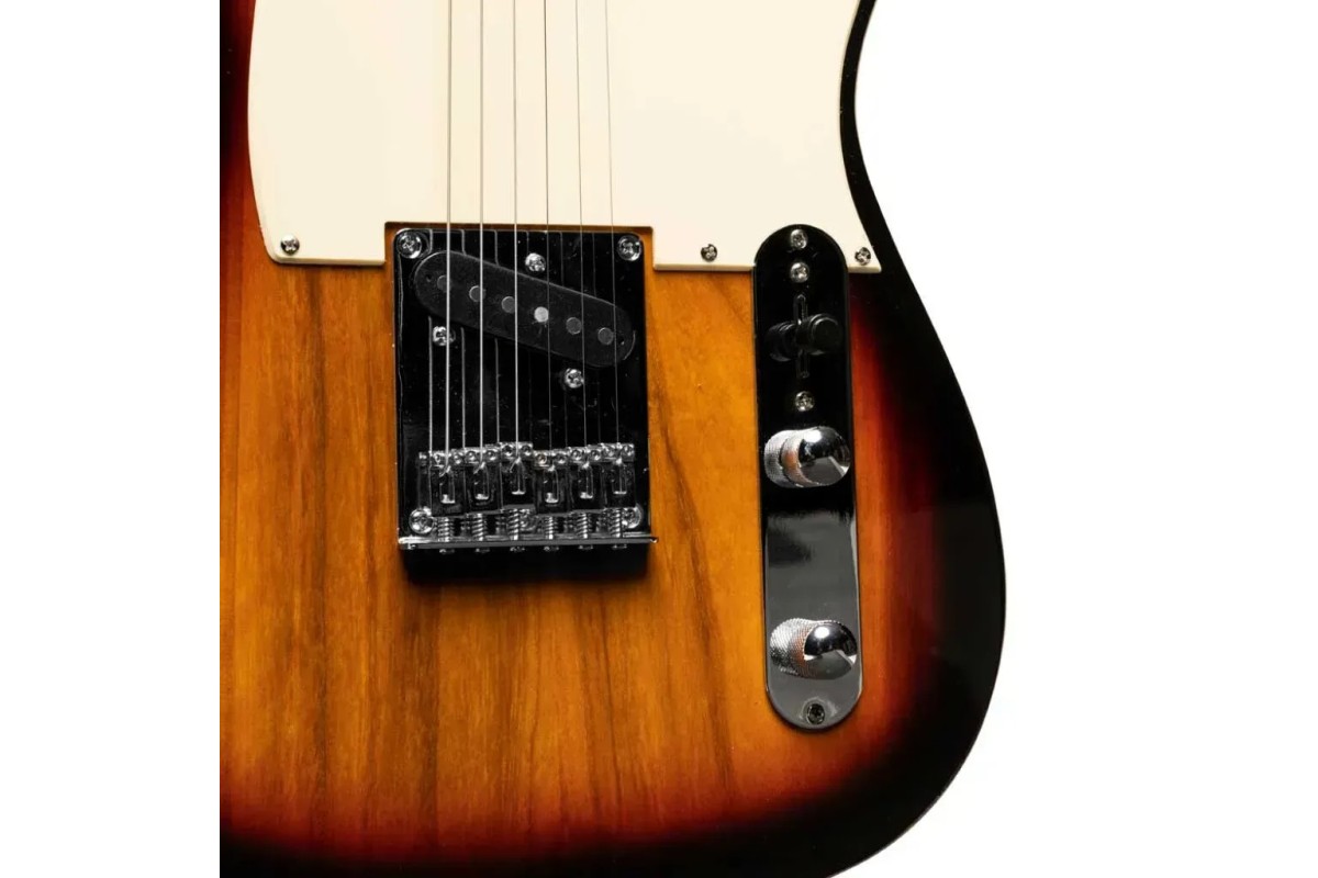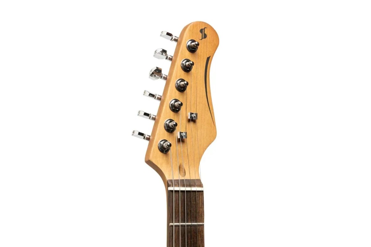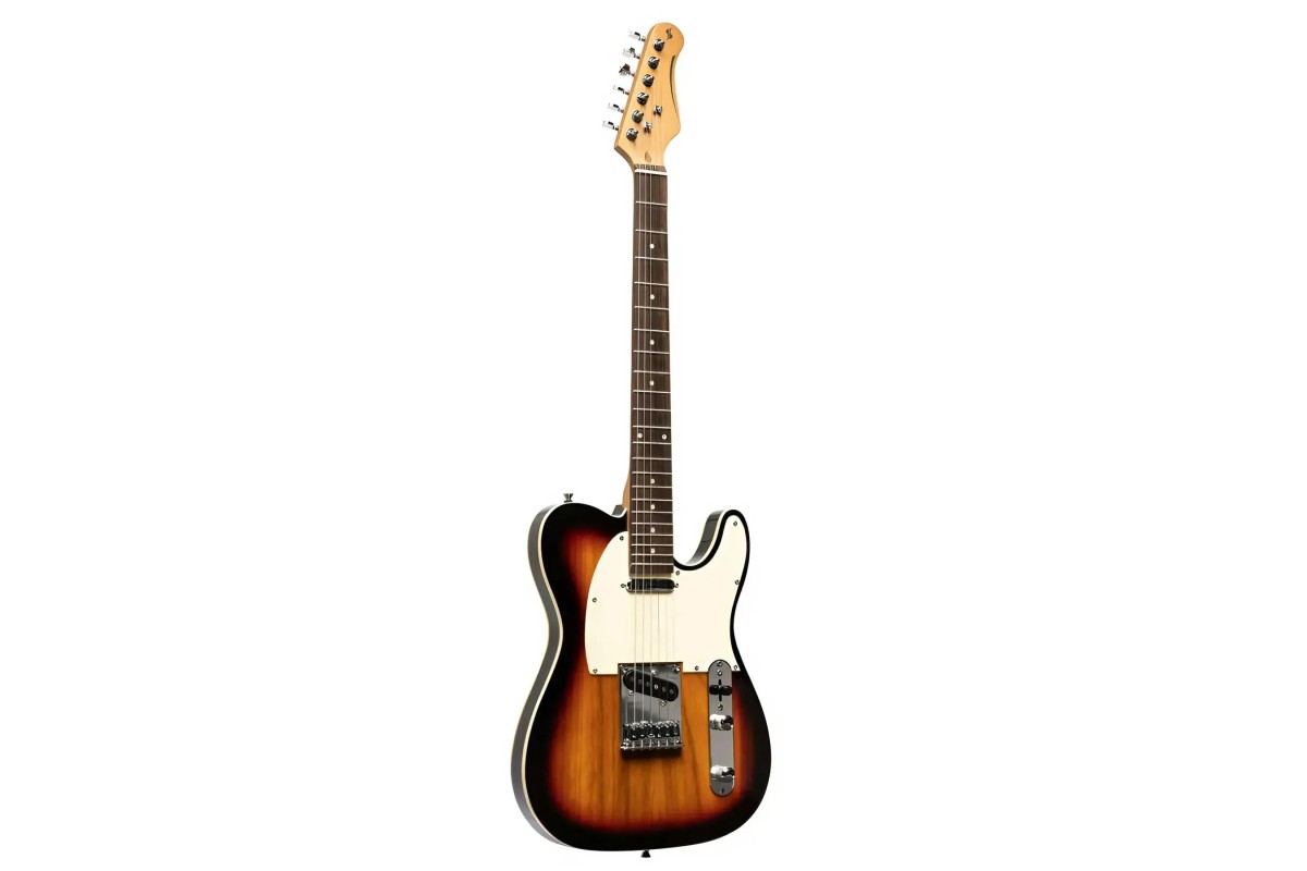 STAGG SET-STD SNB – это винтажная электрогитара серии "Т" с шестью струнами, выполненная в стиле телекастер и окрашенная в цвет санберста. Корпус инструмента изготовлен из массива павловнии, а гриф на болтовом креплении из клена с палисандровой накладкой обеспечивает легкий доступ к верхним строям. Гитара имеет 21 строй и белые маркеры на ладах. Оснащена двумя звукоснимателями-синглами, регуляторами громкости и тона, а также Push/Pull переключателем для последовательного/параллельного включения датчиков и 3-позиционным переключателем. Бридж выполнен в классическом стиле с проходом струн через корпус, а литые шпильки с хромированными бутонами обеспечивают надежную фиксацию. Верхний порожок сделан из кости. Гитара снабжена струнами корейского производства и пикгардом цвета слоновой кости.