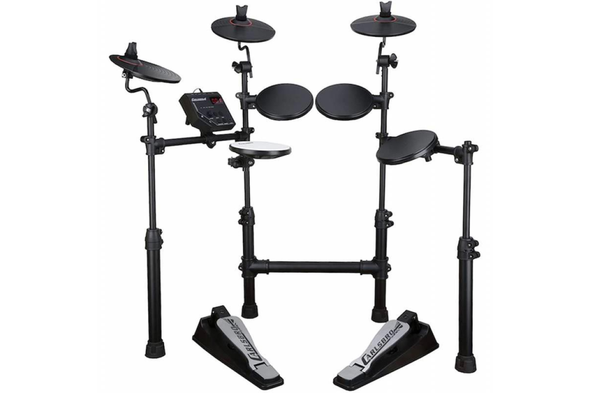Электронная ударная установка CARLSBRO CSD100 состоит из звукового модуля Commander 100, 4 барабанных педов, 3 тарелок, включая двухзонную Ride и телескопическую раму с регуляцией высоты. Commander 100 имеет 10 барабанных пресетов, 108 звуков, 10 демо-песен, aux-вход и метроном. Идеально подходит для живых выступлений или записи в студии, а также практики дома.