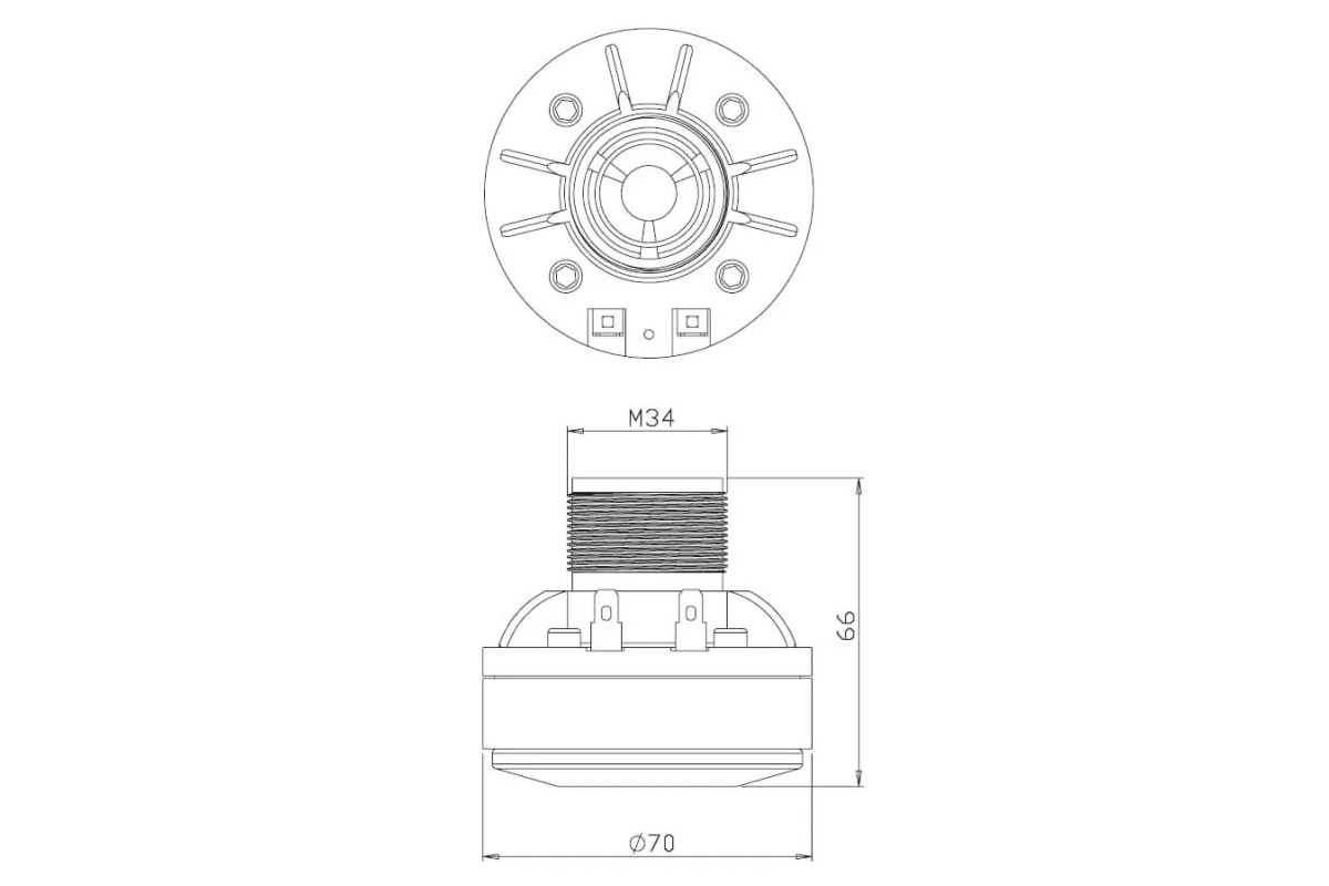 ОсновныеДиаметр выхода, мм/дюйм25/1Номинальная мощность, Вт20Максимальная мощность, Вт40Номинальное сопротивление, Ом8 Чувствительность (1Вт/1м), дБ102Частотный диапазон, Гц2000 - 18000Re, Ом5 мм/дюйм25,5/1Плотность потока, Т1,4ДиафрагмаСмолаЗвуковая катушкаМеднаяМагнитФеритовыйВес, кг0,6