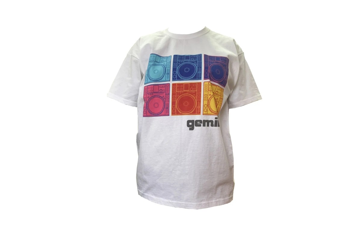 Футболка от известной американской фирмы Gemini с изображением разноцветных проигрывателей (желтый, синий, голубой, темно-синий, красный, розовый). Футболка состоит полностью из хлопка (100% хлопок), приятна к телу. Принт хорошего качества, не пострадает от многочисленных стирок и сама футболка отлично сохраняет форму и цвет. Успейте приобрести по приятной цене, товара осталось совсем немного!