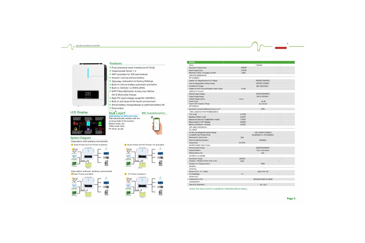 Гибридный инвертор HYBRID24V4200W – это высокотехнологичное устройство, поддерживающее как автономную работу (OFF-grid) , так и работу с отдачей в городскую сеть (ON-grid) .