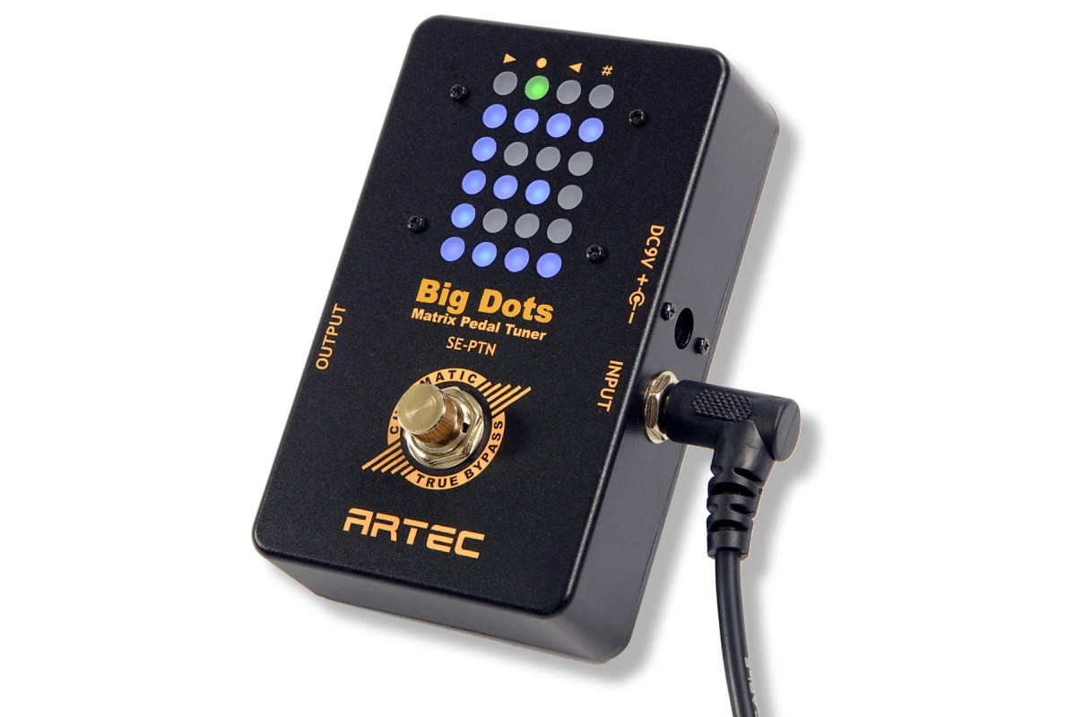 Artec SE-PTN Matrix Pedal Tuner – это напольный тюнер, разработанный специально для сцены. Находясь в выключенном состоянии, благодаря True-Bypass пропускает через себя сигнал без изменений и при этом вообще не тратит заряд батареи. Гитарист может видеть экран Artec SE-PTN Matrix Pedal Tuner, в любых условиях использования.
