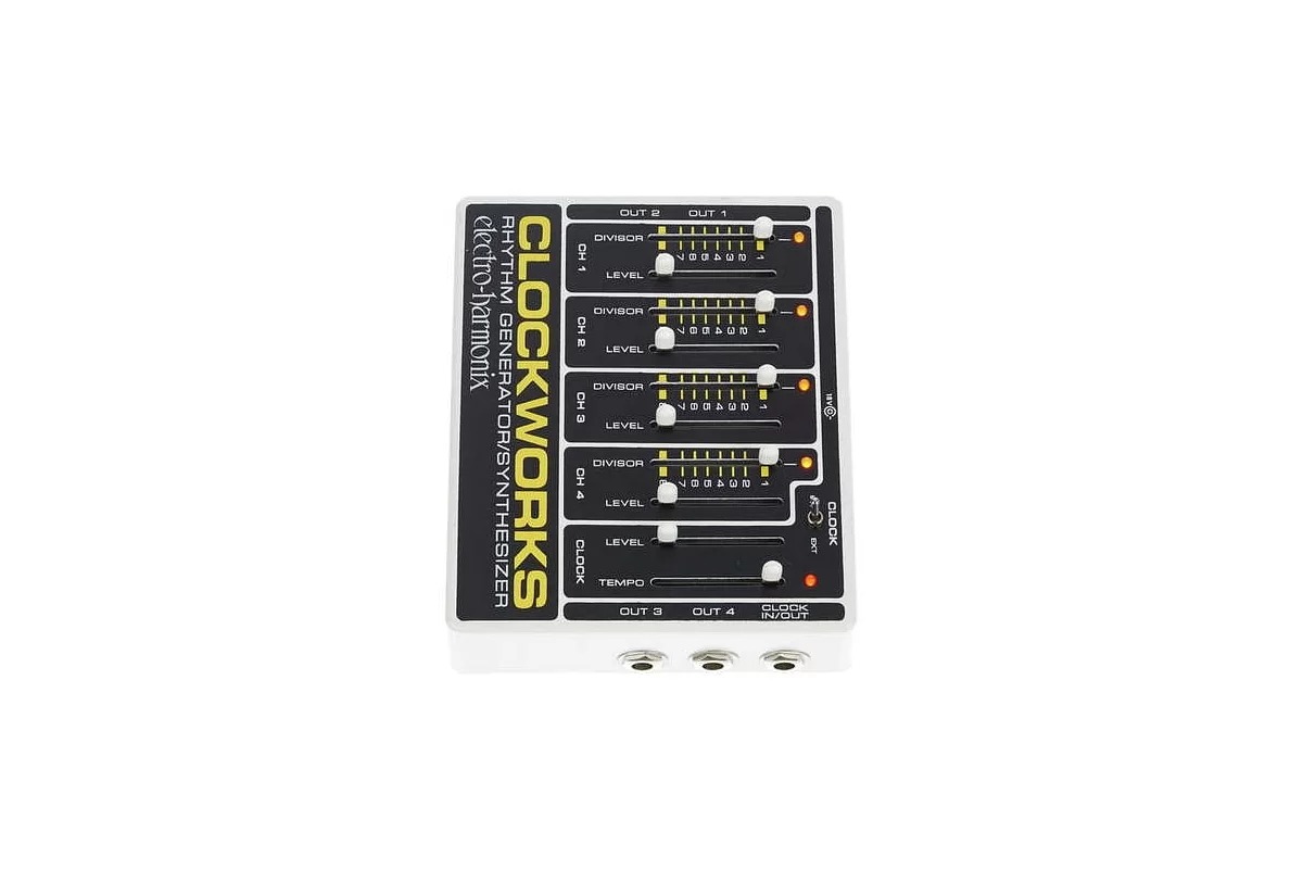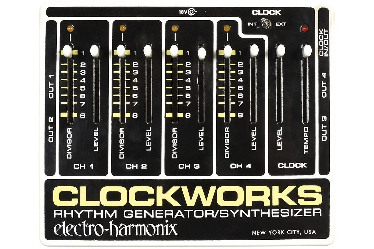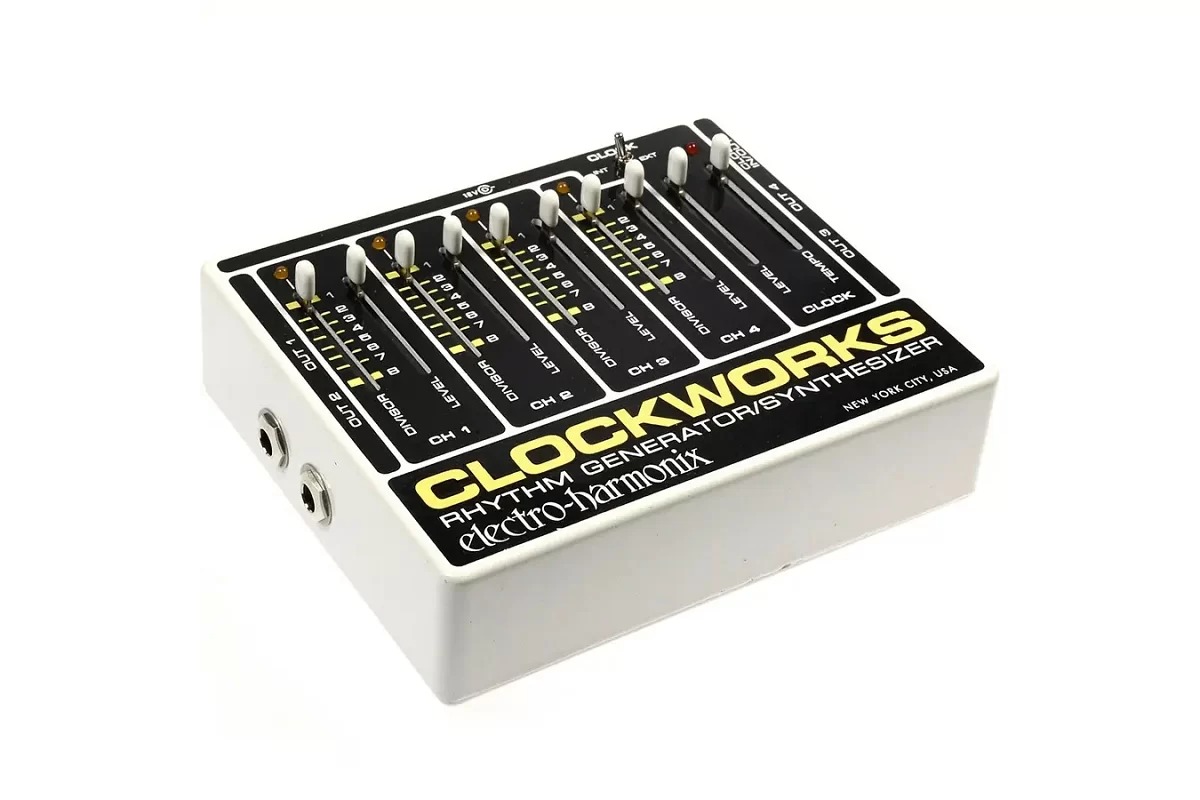MIDI-секвенсор от американской фирмы Electro-Harmonix . Данное устройство способно генерировать последовательность определенных MIDI-сигналов, что позволяет управлять одним или несколькими гаджетами, которые могут воспринимать такие сигналы. Clockworks позволяет создавать паттерны для драм-машин, регулировать параметры различных устройств и взаимодействовать с другими секвенсорами .